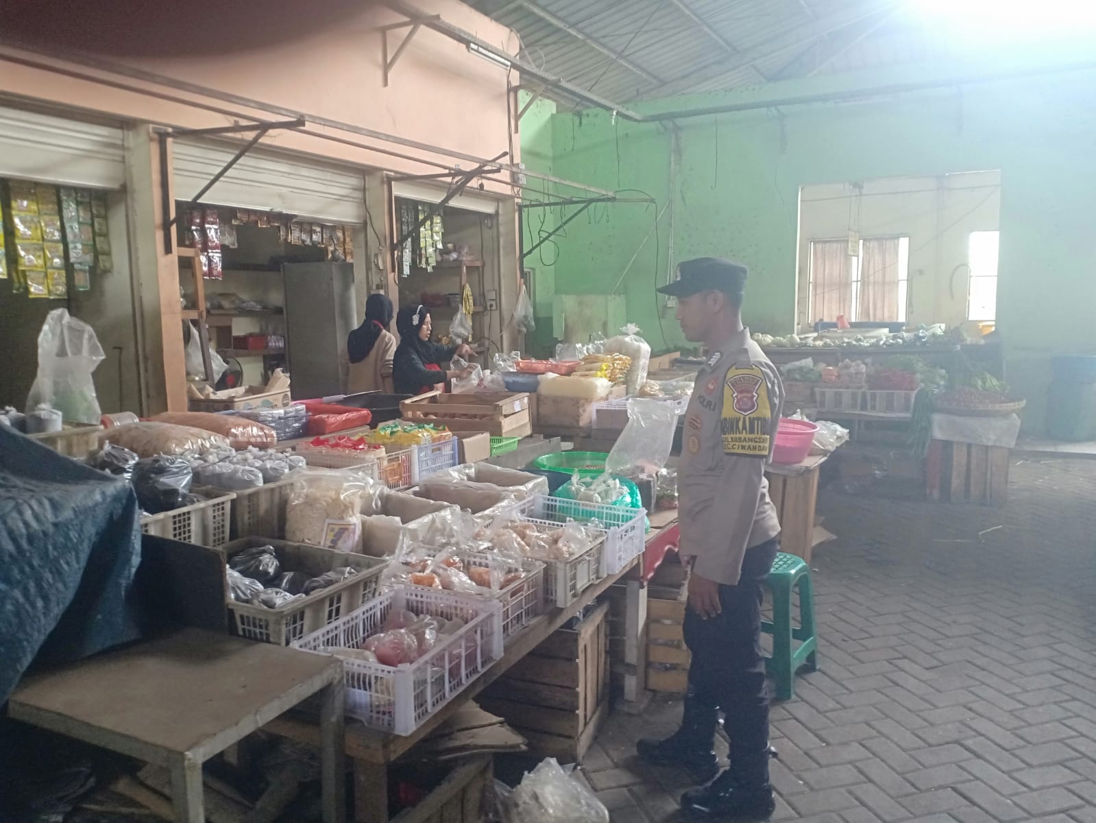 Masuk Pasar Tradisional,Bhabinkamtibmas Pastikan Ketersediaan Sembako Aman