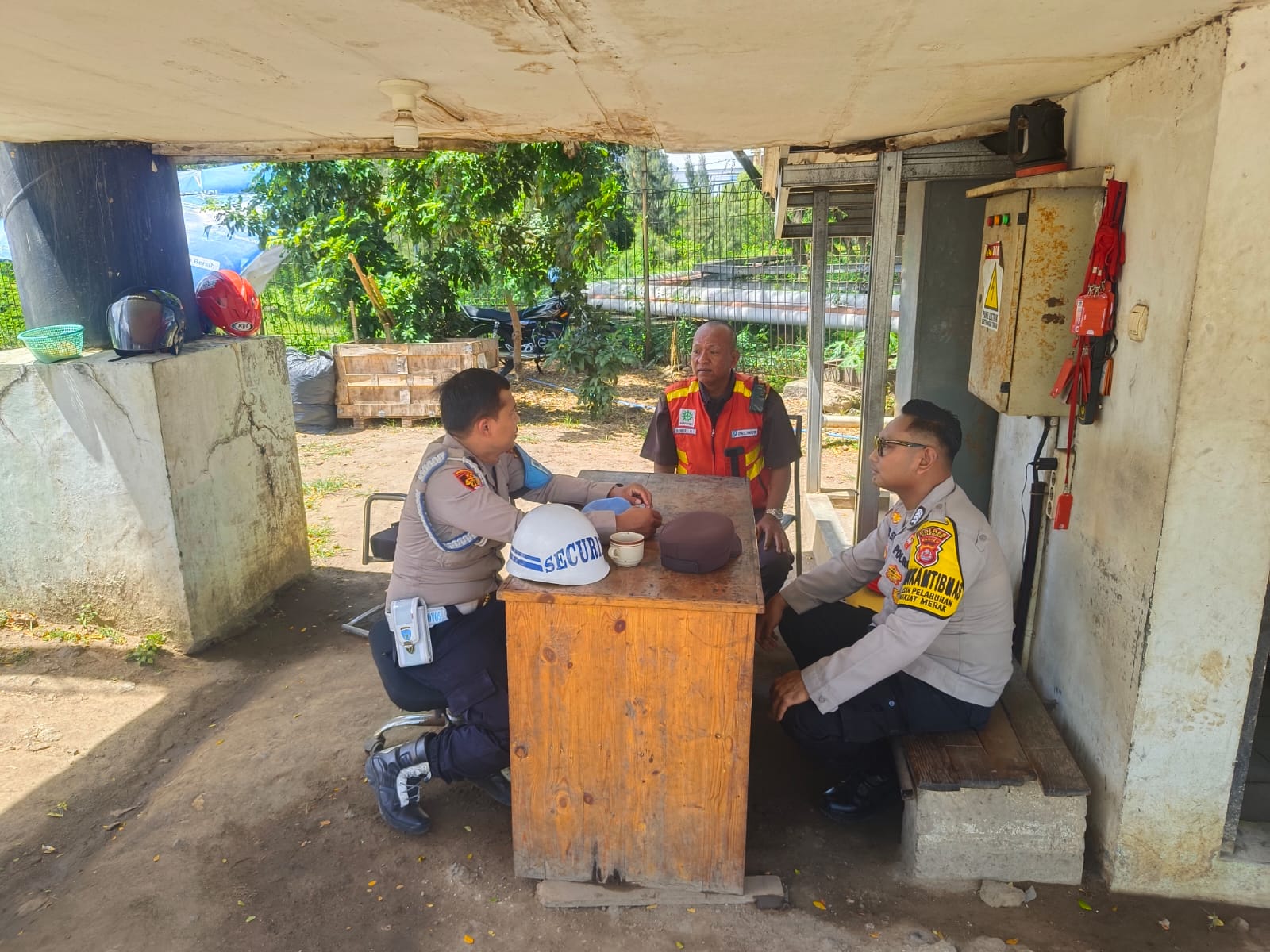 Personil Bhabinkamtibmas Polsek KP Banten Berbincang dengan Karyawan Pelabuhan