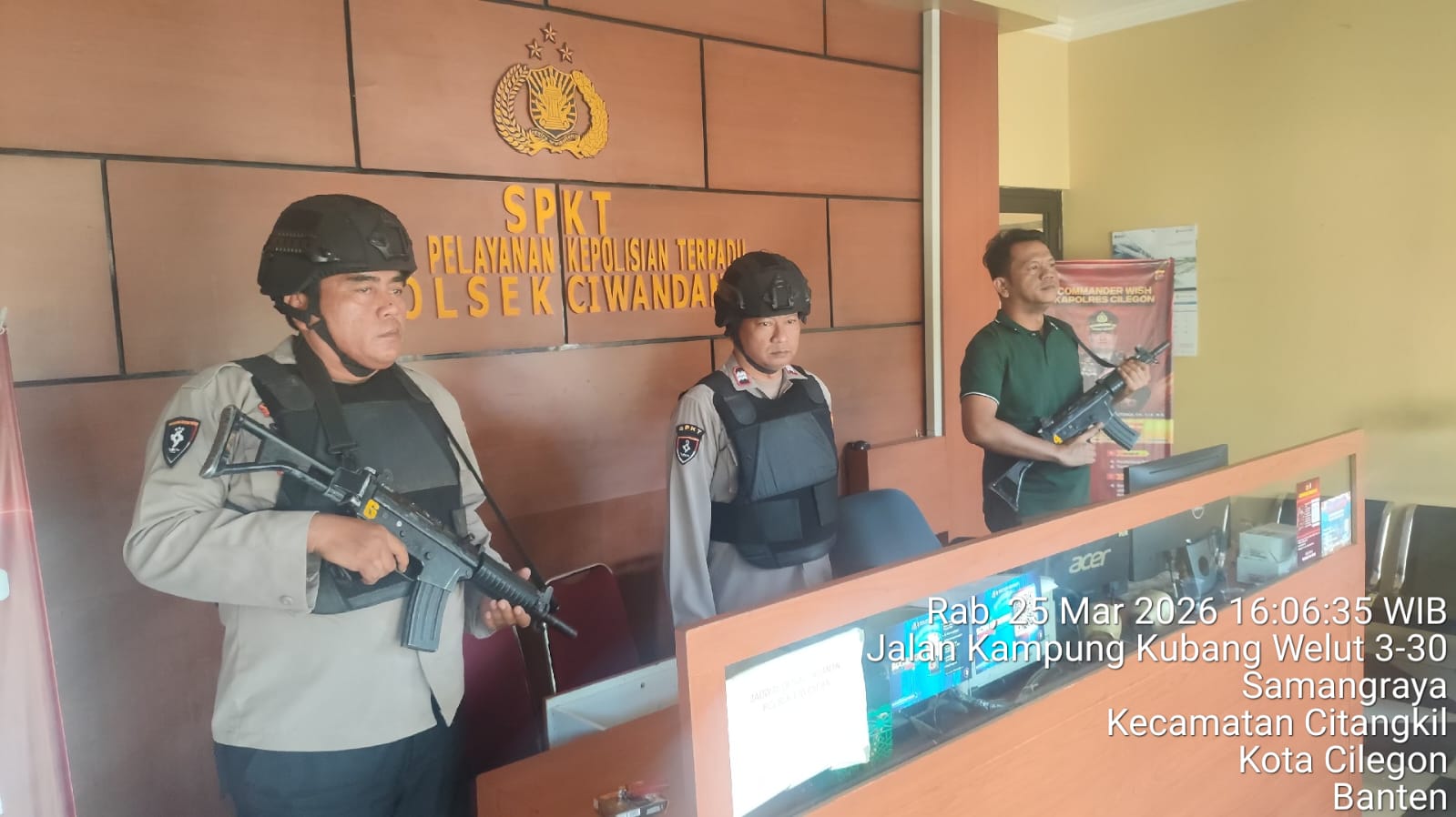 Cilegon - Dalam Kesiap Siagaan dan Memperketat Penjagaan Mako (Markas Komando), Personil Polsek Ciwandan Polres Cilegon Polda Banten melaksanakan Sistem Pengamanan Markas Komando (Sispam Mako), Rabu (25/03/2026).