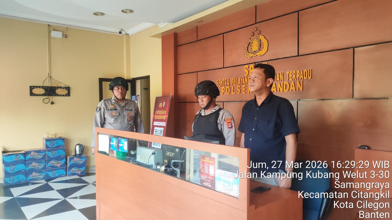Kapolres Cilegon Polda Banten AKBP Dr. Martua Raja Taripar Laut Silitonga yang diwakili oleh Kapolsek Ciwandan Polres Cilegon Polda Banten KOMPOL Achri Dwi Yunito menerangkan bahwa sebagai langkah dalam mencegah timbulnya potensi gangguan dari luar terhadap keamanan kantor maupun keselamatan personel piket jaga, selalu memerintahkan kepada personel yang melaksanakan piket jaga Mako agar sewaktu-waktu menggelar kegiatan Sispam Mako.