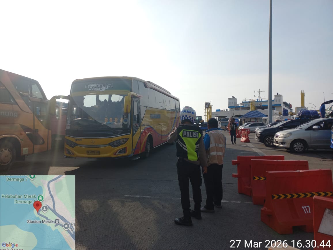 Cilegon - Dalam rangka peningkatan pelayanan prima kepada masyarakat, Kskp Merak Polres Cilegon Polda Banten melaksanakan pengaturan antrian R4 yang akan masuk ke Kapal Ferry di Pelabuhan Merak, Jumat (27/03/2026).