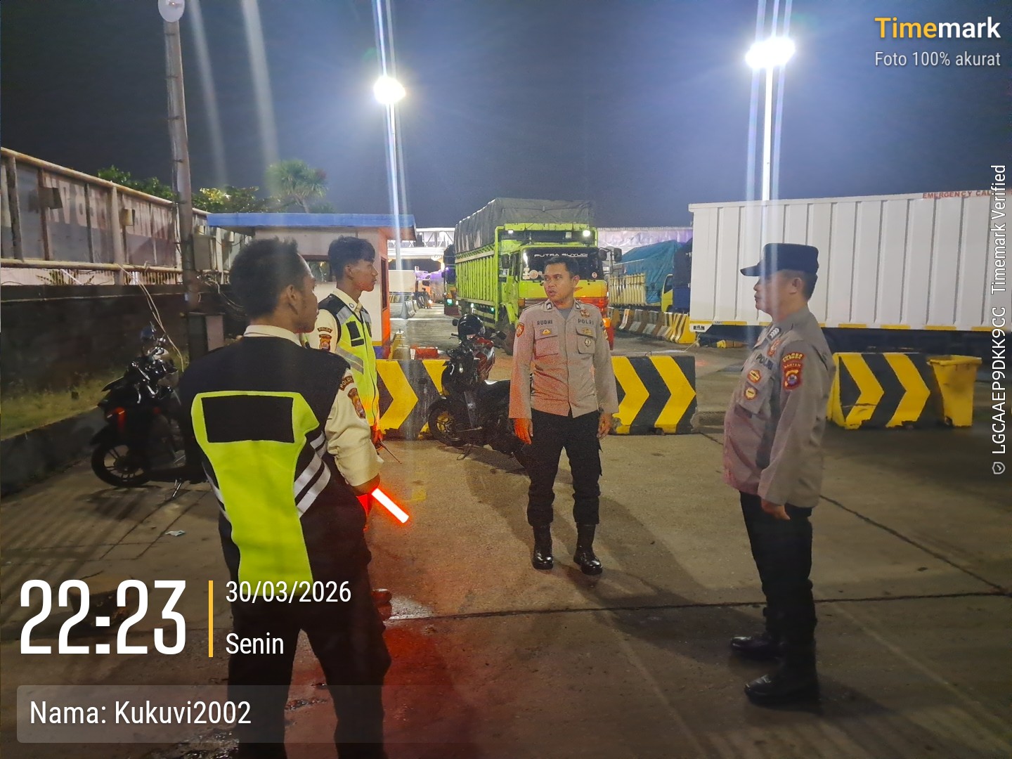 Cilegon - Personil Polsek Kskp Merak Polres Cilegon melaksanakan patroli di kawasan pelabuhan merak memberikan rasa aman dan damai, Senin (30/03/2026)