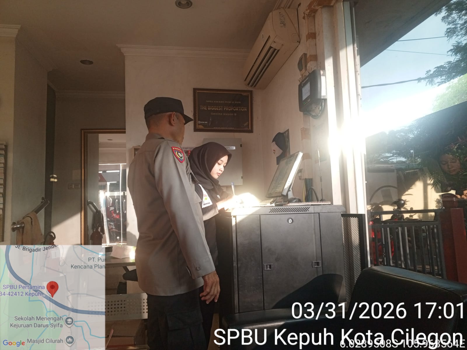 Cilegon - Kepolisian Polsek Ciwandan Polres Cilegon Polda Banten, melakukan pengecekan stok Bahan Bakar Minyak (BBM) di dua SPBU di wilayah Ciwandan, Cilegon, Selasa (31/03/2026).