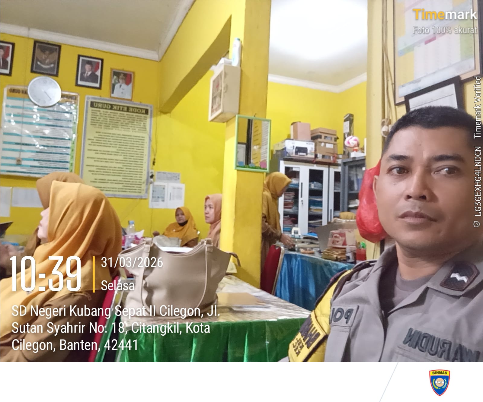 Cilegon - Bhabinkamtibmas Polsek Ciwandan Polres Cilegon Polda Banten Sampaikan Pesan-Pesan Kamtibmas Kepada Dewan Guru, Selasa (31/03/2026).