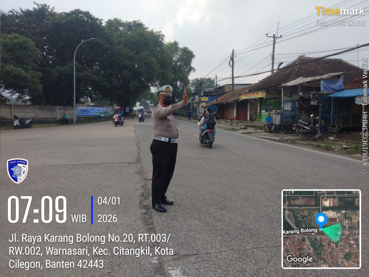 Cilegon – Berikan Pelayanan Kepada Masyarakat Personil Polsek Ciwandan Polres Cilegon Polda Banten melaksanakan pengaturan di titik kepadatan Arus Lalu-lintas Yang Ada Di daerah Hukum Polsek Ciwandan, Rabu (01/04/2026).