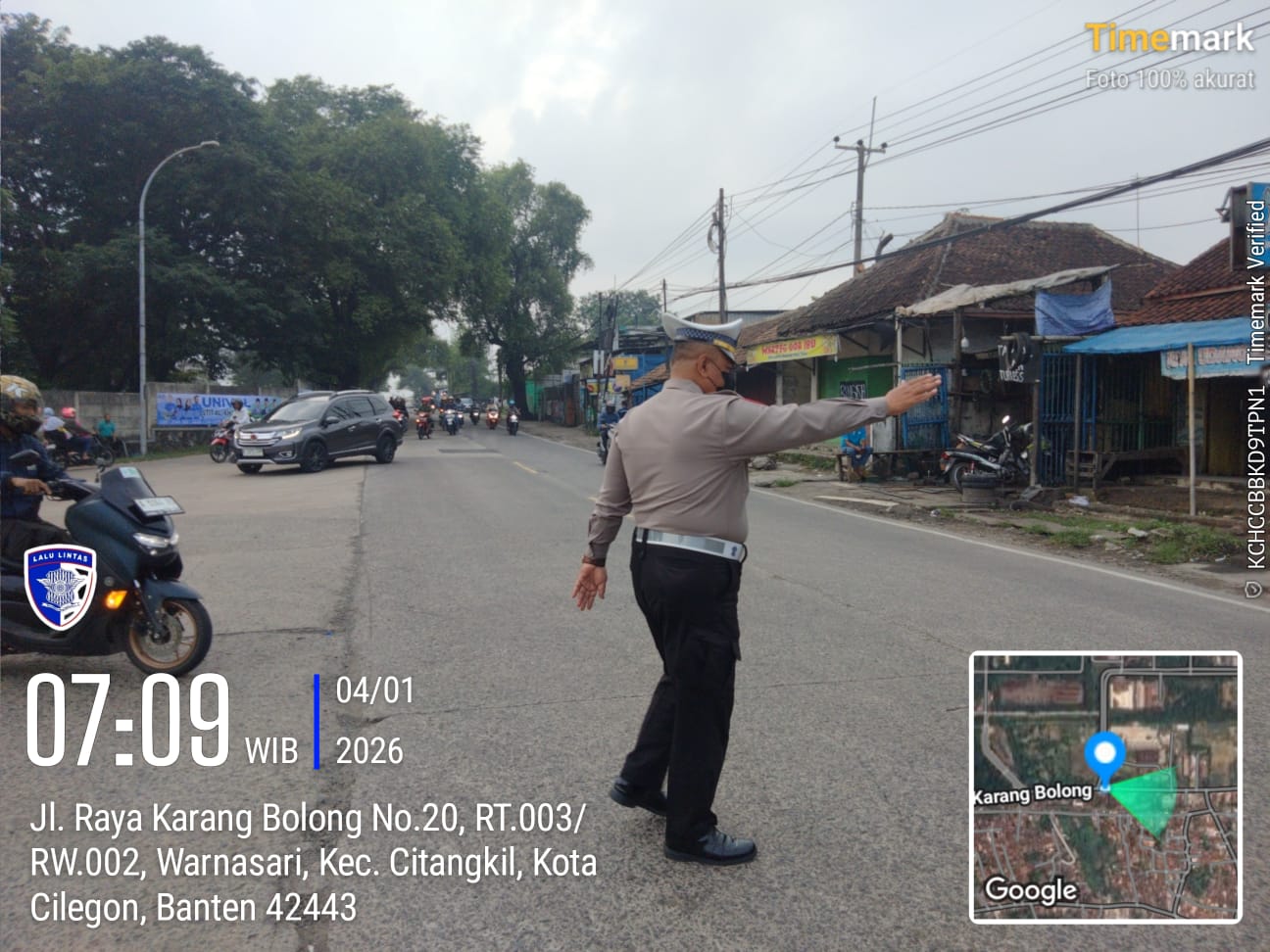 Cilegon – Berikan Pelayanan Kepada Masyarakat Personil Polsek Ciwandan Polres Cilegon Polda Banten melaksanakan pengaturan di titik kepadatan Arus Lalu-lintas Yang Ada Di daerah Hukum Polsek Ciwandan, Rabu (01/04/2026).