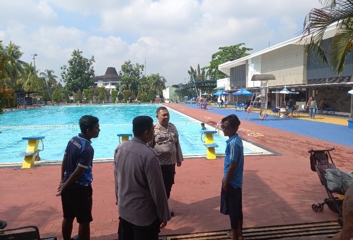 Personil Polsek Purwakarta, Polres Cilegon, melaksanakan kegiatan patroli dialogis di Kolam Renang Krakatau Water World