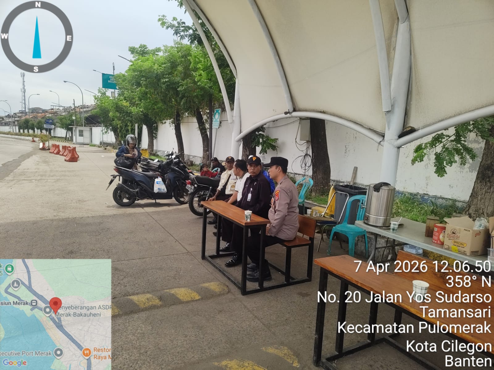 Cilegon - Personel Polsek Kskp Merak Polres Cilegon Polda Banten melaksanakan sambang dan patroli kawasan pelabuhan merak dalam rangka menjaga Harkamtibmas di Kawasan Pelabuhan Merak, Selasa (07/04/2026).