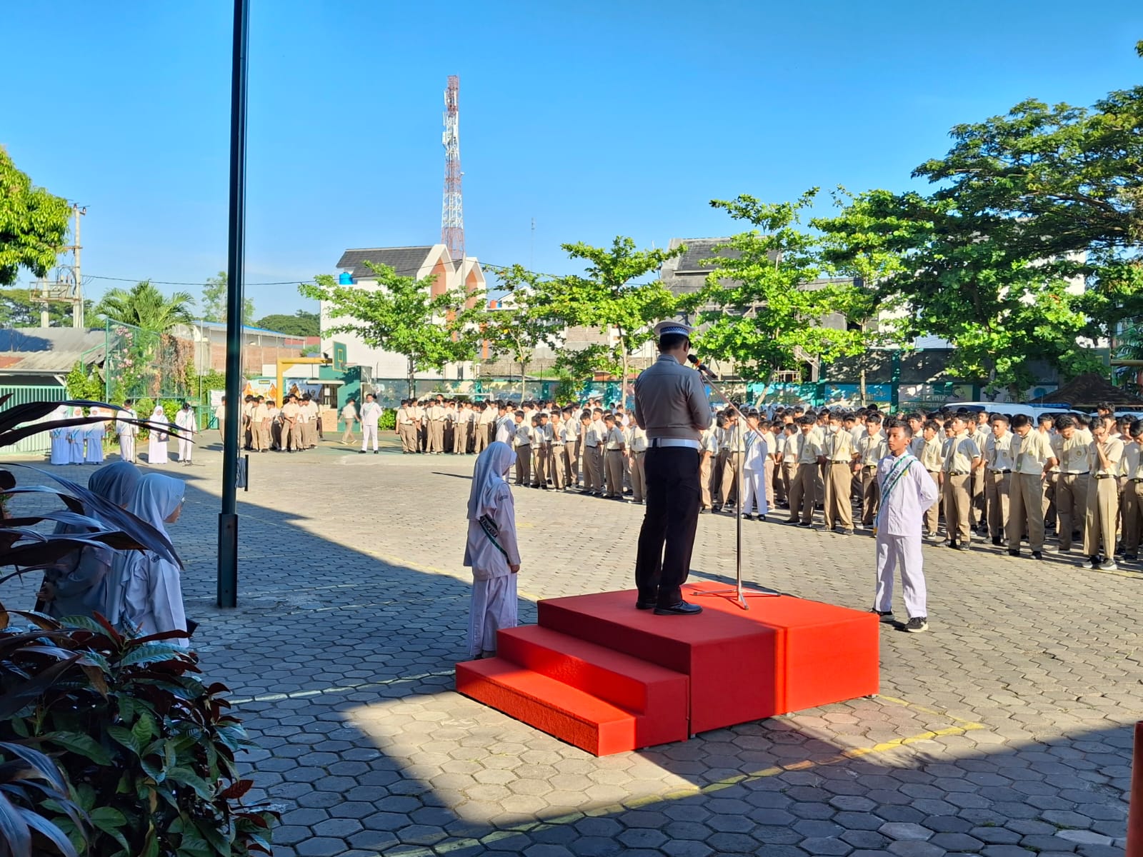 Dalam amanatnya, AKBP Syamsul Bahri menekankan pentingnya kedisiplinan dan peran aktif generasi muda dalam menjaga ketertiban masyarakat, khususnya di lingkungan sekolah.