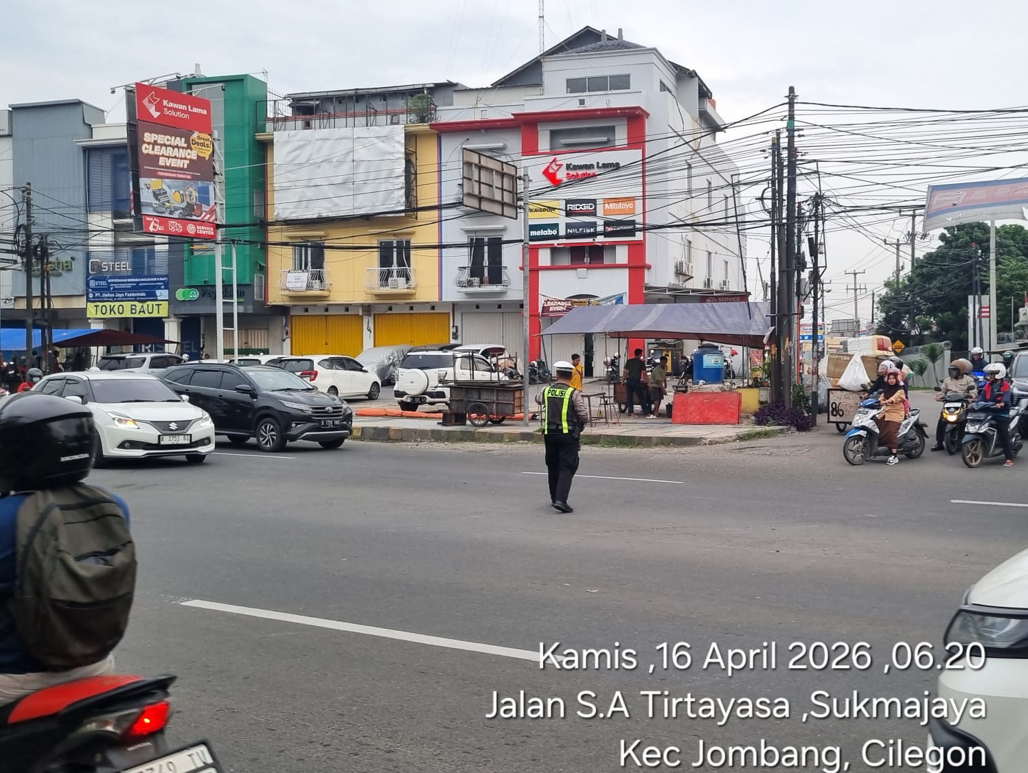 Cilegon, Satlantas Polres Cilegon Polda Banten – Berikan pelayanan kepada masyarakat Kasat lantas Polres Cilegon AKP Ridwan memerintahkan jajaran lalulintas untuk melaksanakan pengaturan lalu lintas di penggal – penggal jalan yang rawan kemacetan di Kota Cilegon, (Kamis,16/4/2026)