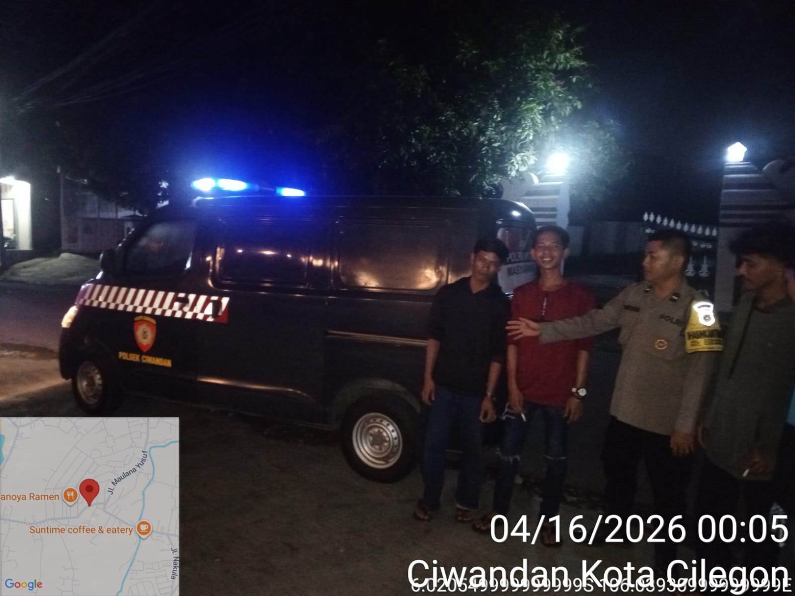 Cilegon - Personil Polsek Ciwandan Polres Cilegon Polda Banten Dalam Pelaksanaan Kegiatan Patroli dengan menyalakan lampu rotator berwarna biru di Daerah Hukum Polsek Ciwandan Polres Cilegon Polda Banten dari malam hingga dini hari, dalam rangka menciptakan situasi aman dan kondusif, Kamis (16/04/2026).