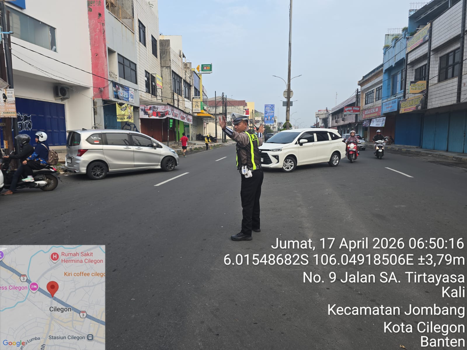 Cilegon, Satlantas Polres Cilegon Polda Banten – Berikan pelayanan kepada masyarakat Kasat lantas Polres Cilegon AKP Ridwan memerintahkan jajaran lalulintas untuk melaksanakan pengaturan lalu lintas di penggal – penggal jalan yang rawan kemacetan di Kota Cilegon, (Sabtu,18/4/2026)