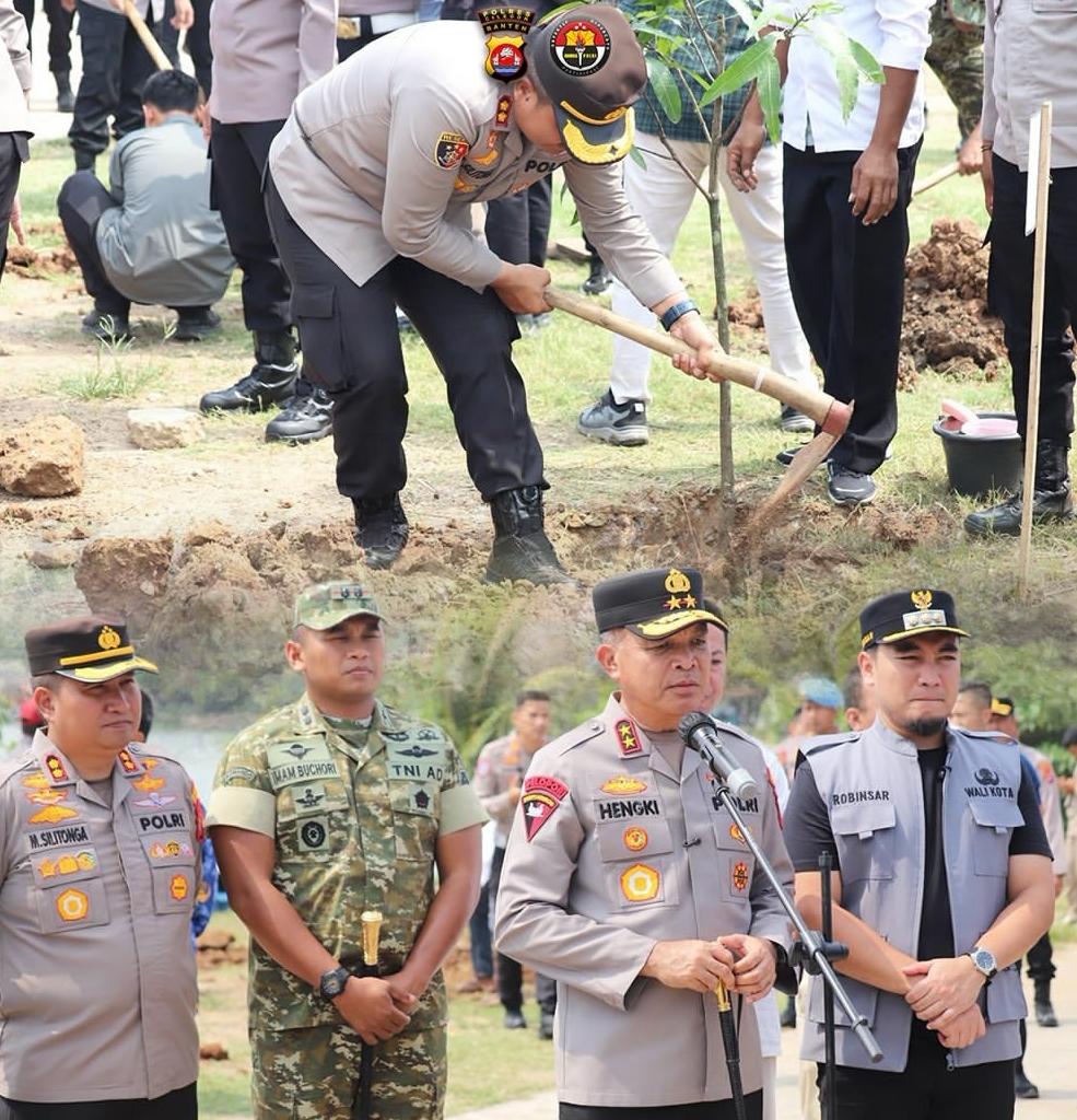 Polres Cilegon melaksanakan penanaman 1.000 pohon di kawasan Situ Rawa Arum, Kelurahan Rawa Arum, Kecamatan Grogol, Kota Cilegon, pada Kamis 17 April 2026.
