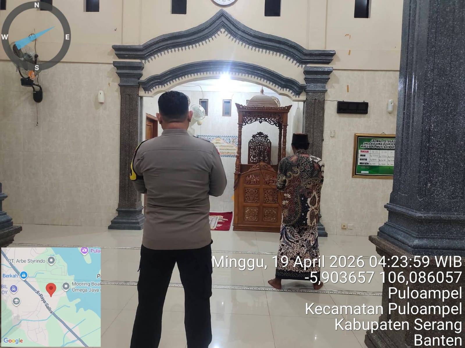 Bhabinkamtibmas Polsek Puloampel melaksanakan Shalat Subuh Berjamaah dalam rangka Program Commander Wish Kapolda Banten (SUBLING) - SUBUH KELILING. Minggu, 19/04/2026.