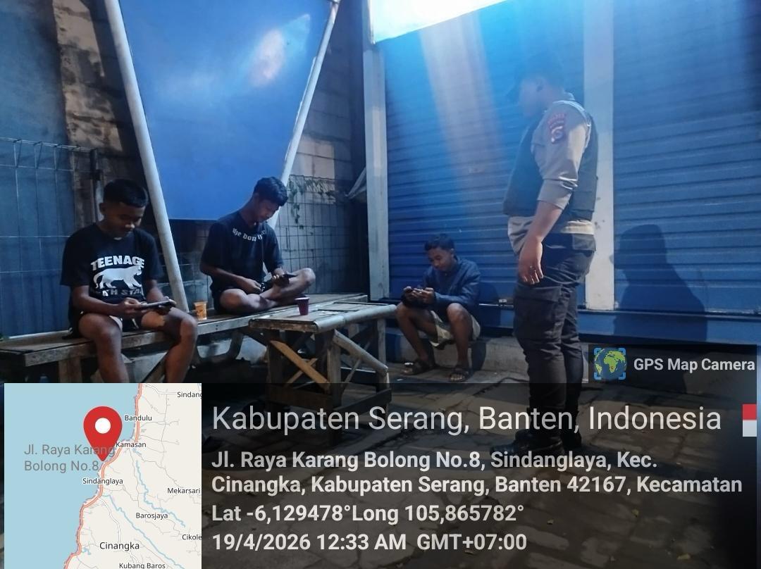 *Cilegon* – Dalam Rangka Pencegahan Kejahatan Jalanan dan Memelihara situasi keamanan dan menjaga serta memberikan rasa aman dan nyaman di masyarakat,Salah satu upaya untuk mewujudkan hal tersebut sebagaimana yang dilakukan oleh Personil Polsek Cinangka Polres Cilegon Polda Banten melaksanakan giat patroli blue light malam hari hingga menjelang pagi, Minggu (19/04/2026).