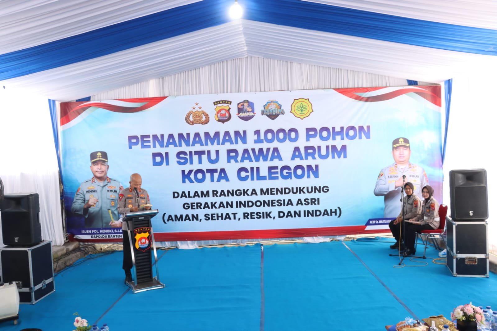 Kegiatan yang dimulai sejak pukul 09.00 WIB tersebut berlangsung penuh semangat kebersamaan. Kapolres Cilegon AKBP Dr. Martua Raja Taripar Laut Silitonga turut hadir mendampingi Kapolda Banten Irjen Pol Hengki dalam rangkaian kegiatan, sekaligus mengikuti langsung proses penanaman pohon bersama para tamu undangan.