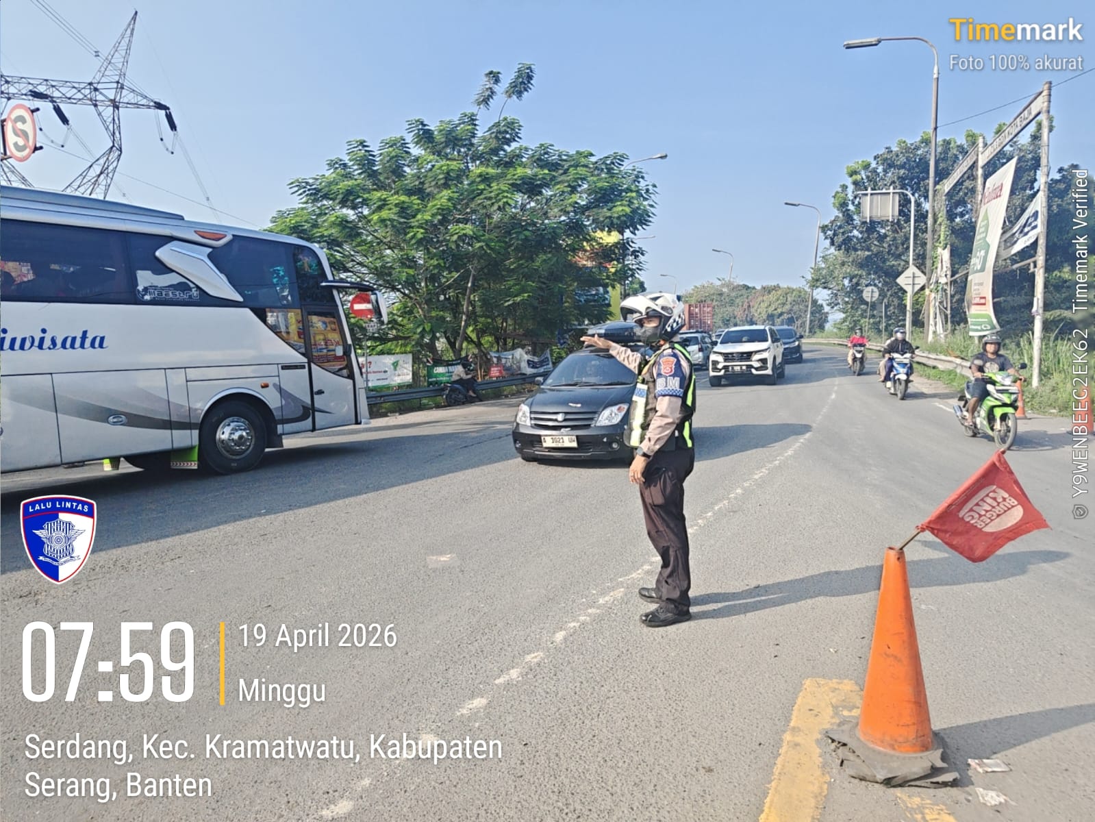 Cilegon, Satlantas Polres Cilegon Polda Banten – Berikan pelayanan kepada masyarakat Kasat lantas Polres Cilegon AKP Ridwan memerintahkan jajaran lalulintas untuk melaksanakan pengaturan lalu lintas di penggal – penggal jalan yang rawan kemacetan di Kota Cilegon, (Minggu,19/4/2026)