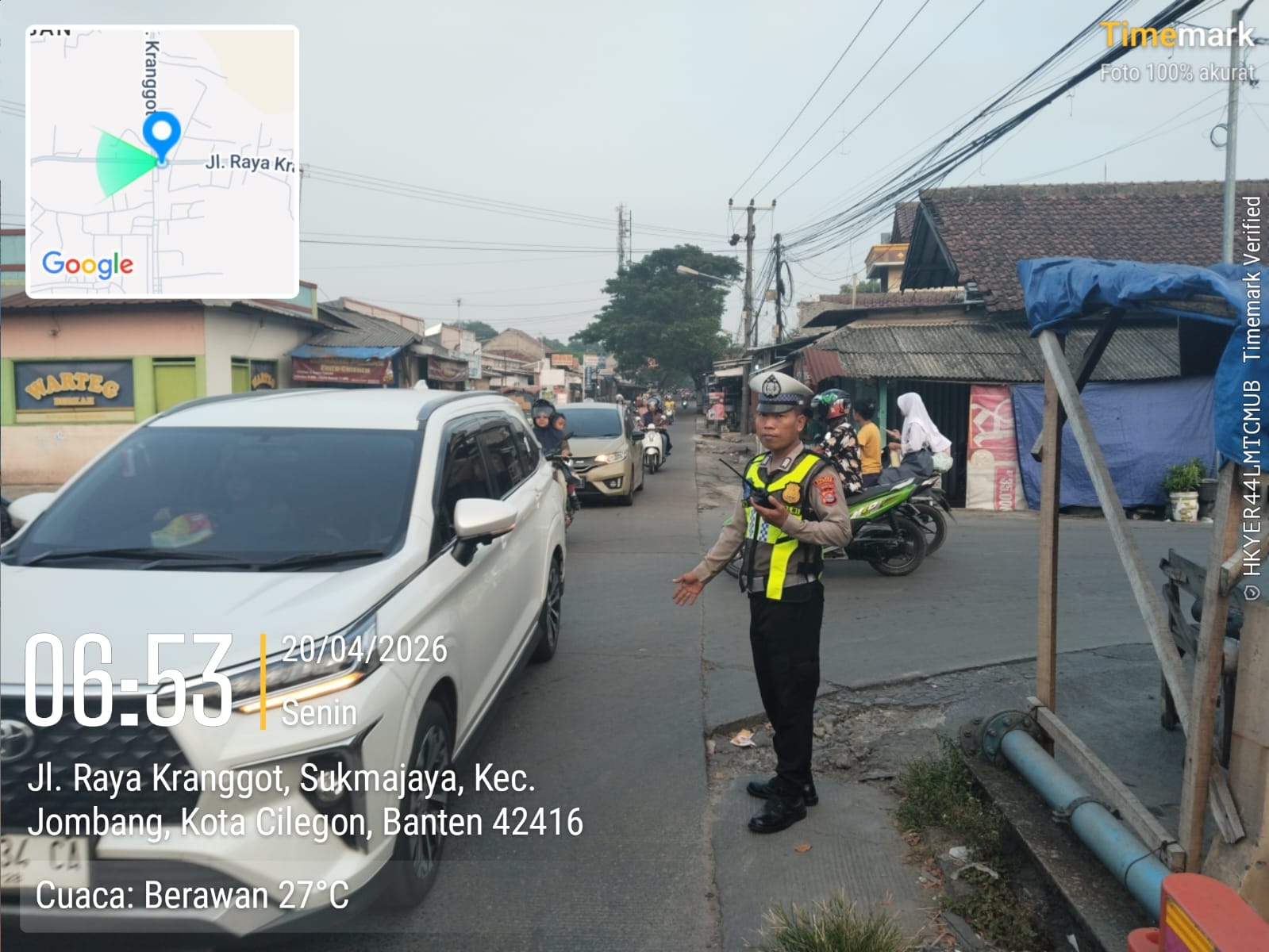 Cilegon, Satlantas Polres Cilegon Polda Banten – Berikan pelayanan kepada masyarakat Kasat lantas Polres Cilegon AKP Ridwan memerintahkan jajaran lalulintas untuk melaksanakan pengaturan lalu lintas di penggal – penggal jalan yang rawan kemacetan di Kota Cilegon, (Senin,20/4/2026)