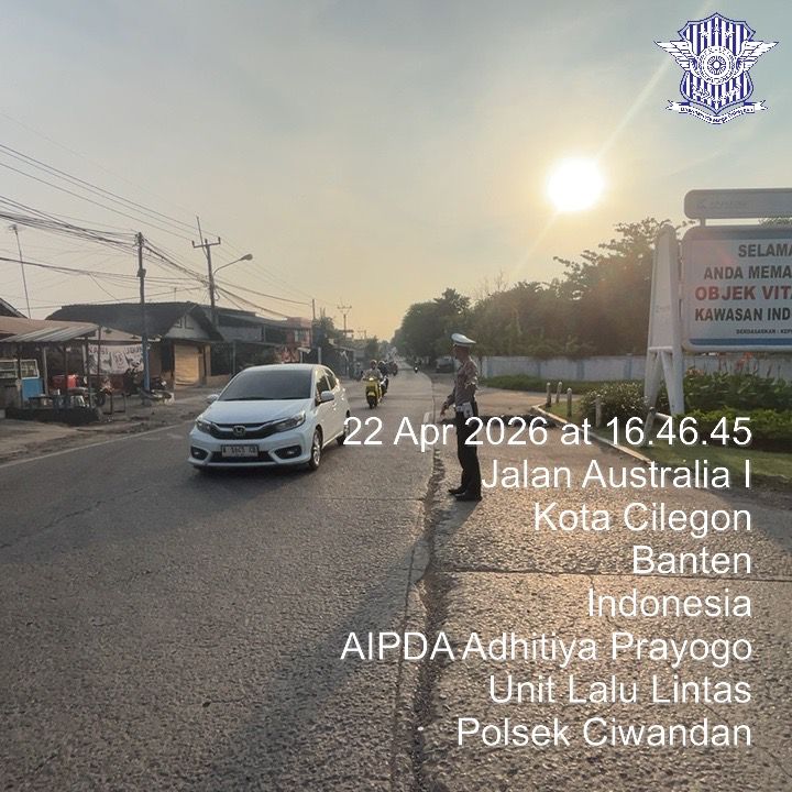 Cilegon - Pelayanan Prima Kepolisian Kepada Warga Masyarakat dan Guna menciptakan situasi lalu lintas yang aman, tertib dan lancar, Personel Unit Lantas Polsek Ciwandan Polres Cilegon Polda Banten secara rutin melaksanakan pengaturan lalu lintas, Rabu (22/04/2026).
