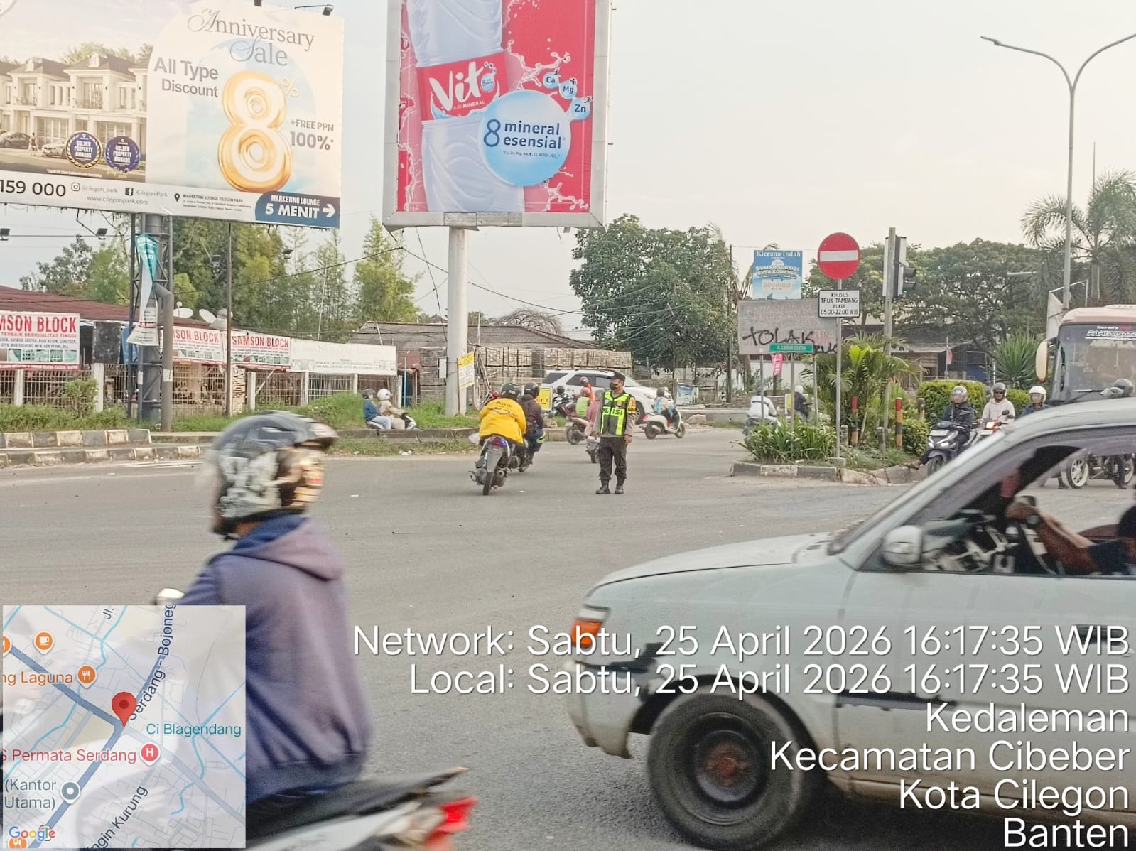 Cilegon – Polres Cilegon Polda Banten, Dalam Mewujudkan Aksi Nyata Pelayanan Kepada Masyarakat, Personil Polsek Cibeber Polres Cilegon Laksanakan Strong Point Pengaturan Lalu lintas, Sabtu (25/04/2026).