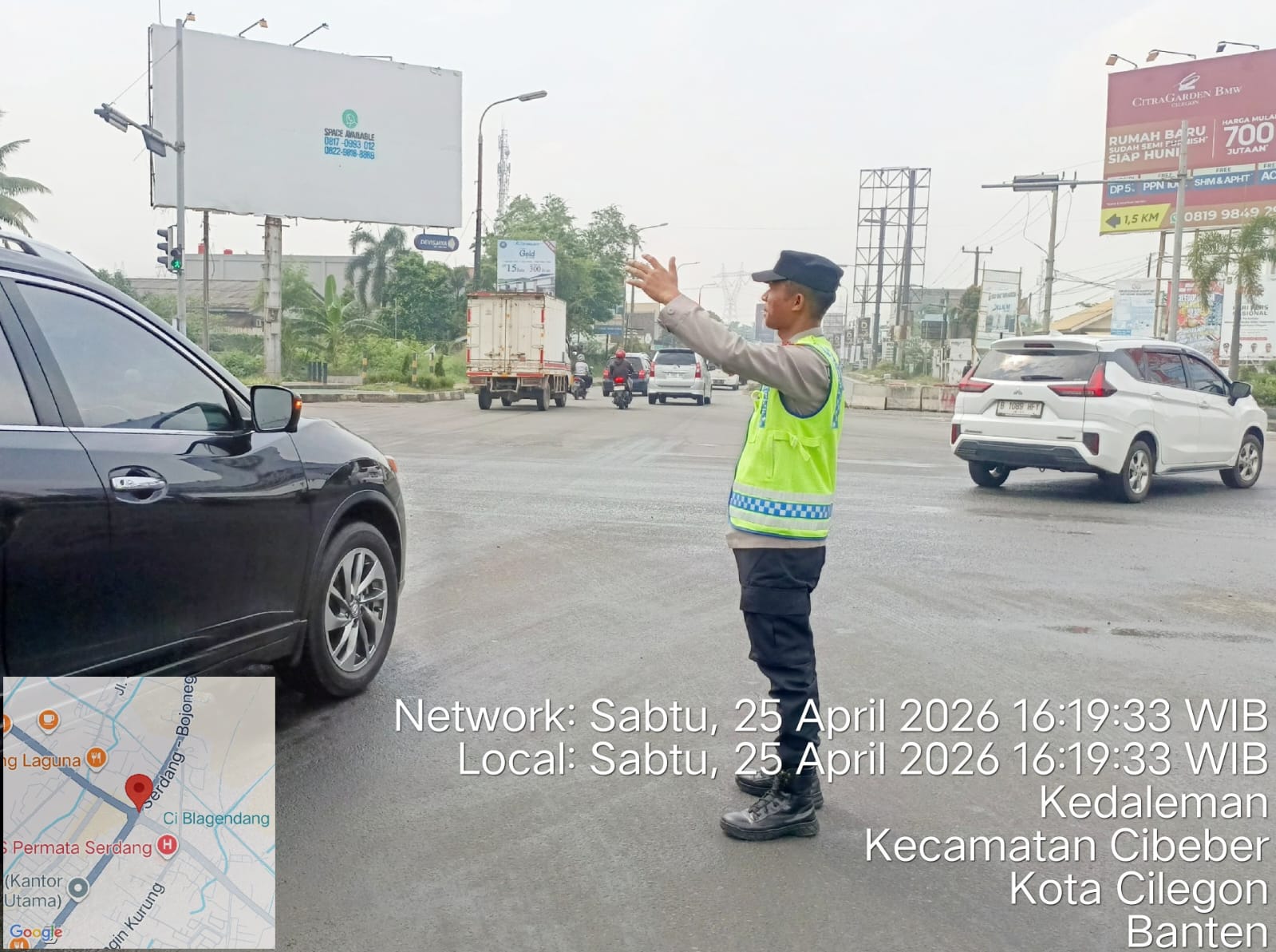 Cilegon – Polres Cilegon Polda Banten, Dalam Mewujudkan Aksi Nyata Pelayanan Kepada Masyarakat, Personil Polsek Cibeber Polres Cilegon Laksanakan Strong Point Pengaturan Lalu lintas, Sabtu (25/04/2026).