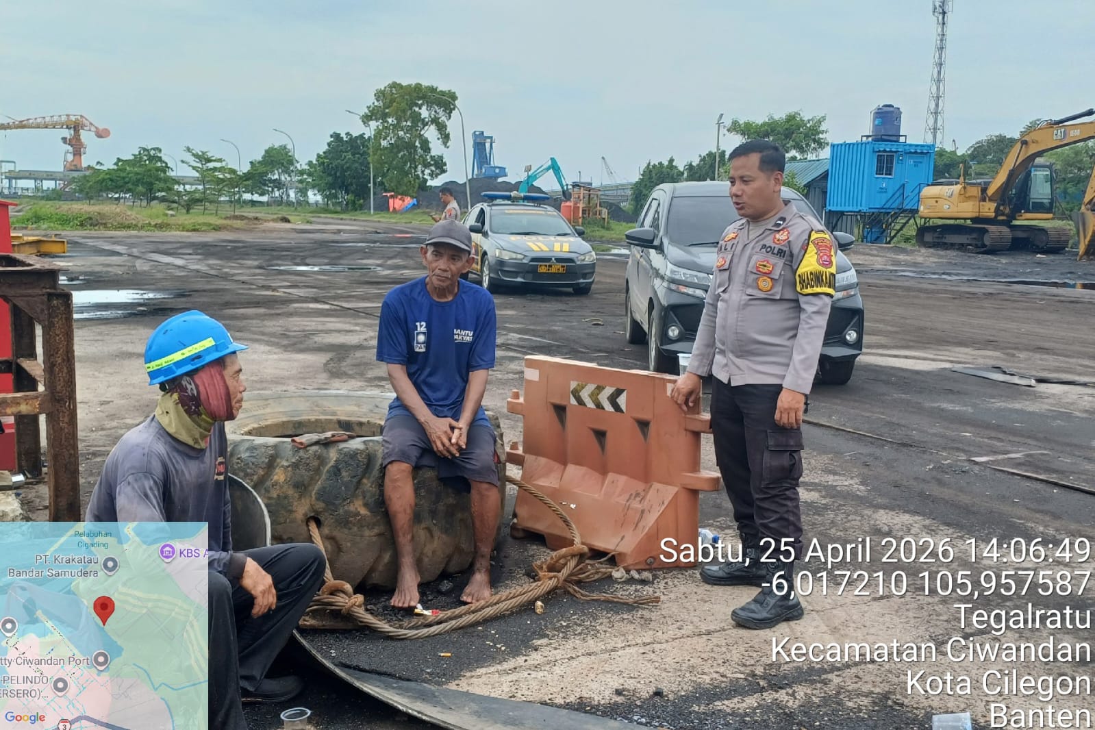 Polres Cilegon Menyapa, Personil KSKP Banten sambangi Karyawan di pelabuhan berikan himbauan kamtibmas.