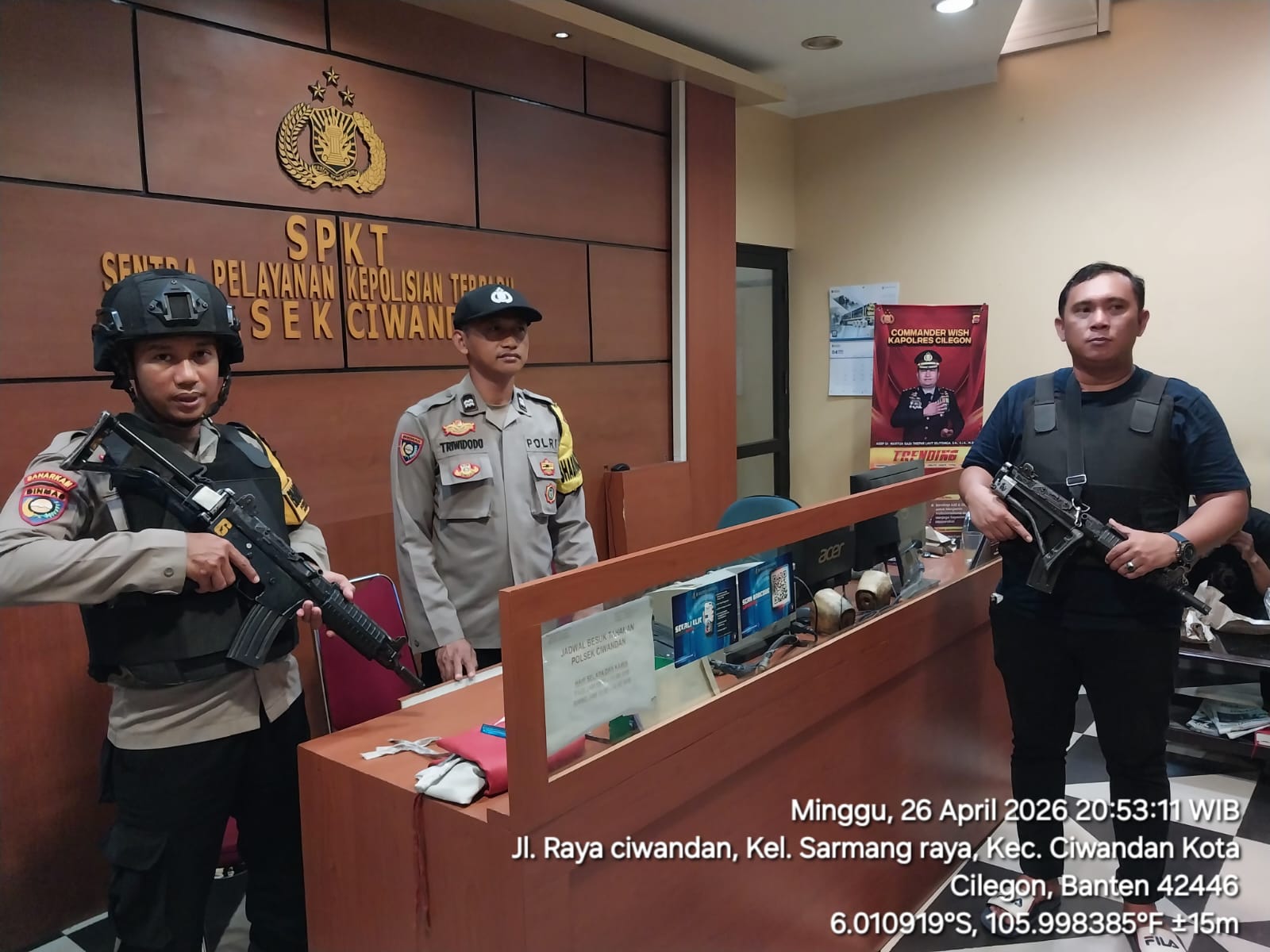 Cilegon - Dalam Kesiap Siagaan dan Memperketat Penjagaan Mako (Markas Komando), Personil Polsek Ciwandan Polres Cilegon Polda Banten melaksanakan Sistem Pengamanan Markas Komando (Sispam Mako), Minggu (26/04/2026).