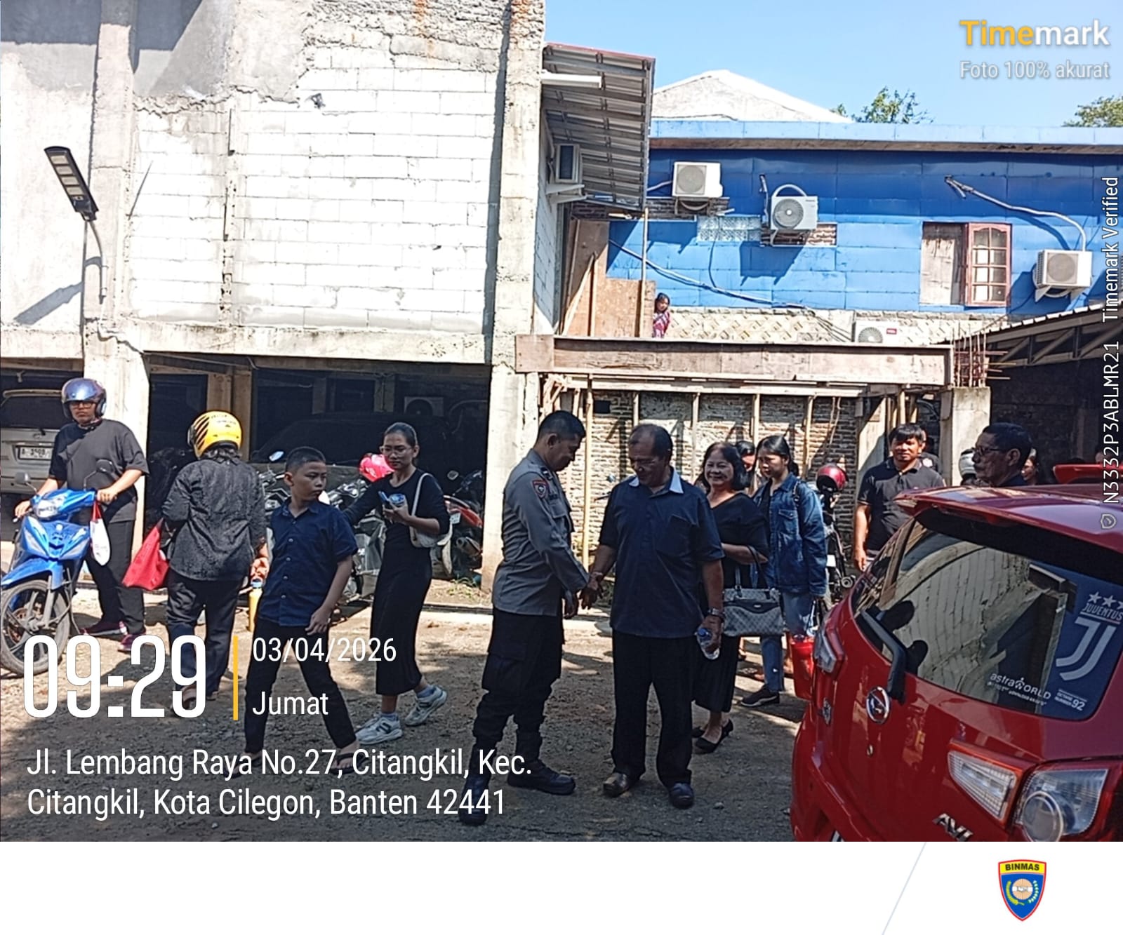 Cilegon - Wujud nyata pelayanan dan kehadiran Polri di tengah masyarakat ditunjukkan oleh Kapolsek Ciwandan Polres Cilegon Polda Banten KOMPOL Achri Dwi Yunito Dalam Pelaksanaan Pengamanan kegiatan keagamaan di Rumah Ibadah Pendeta Paul yang berlokasi di Lingkungan Tegal Cabe Kelurahan Citangkil Kecamatan Citangkil, Kota Cilegon,Jum’at (03/04/2026)Kegiatan pengamanan ini dipimpin langsung oleh...