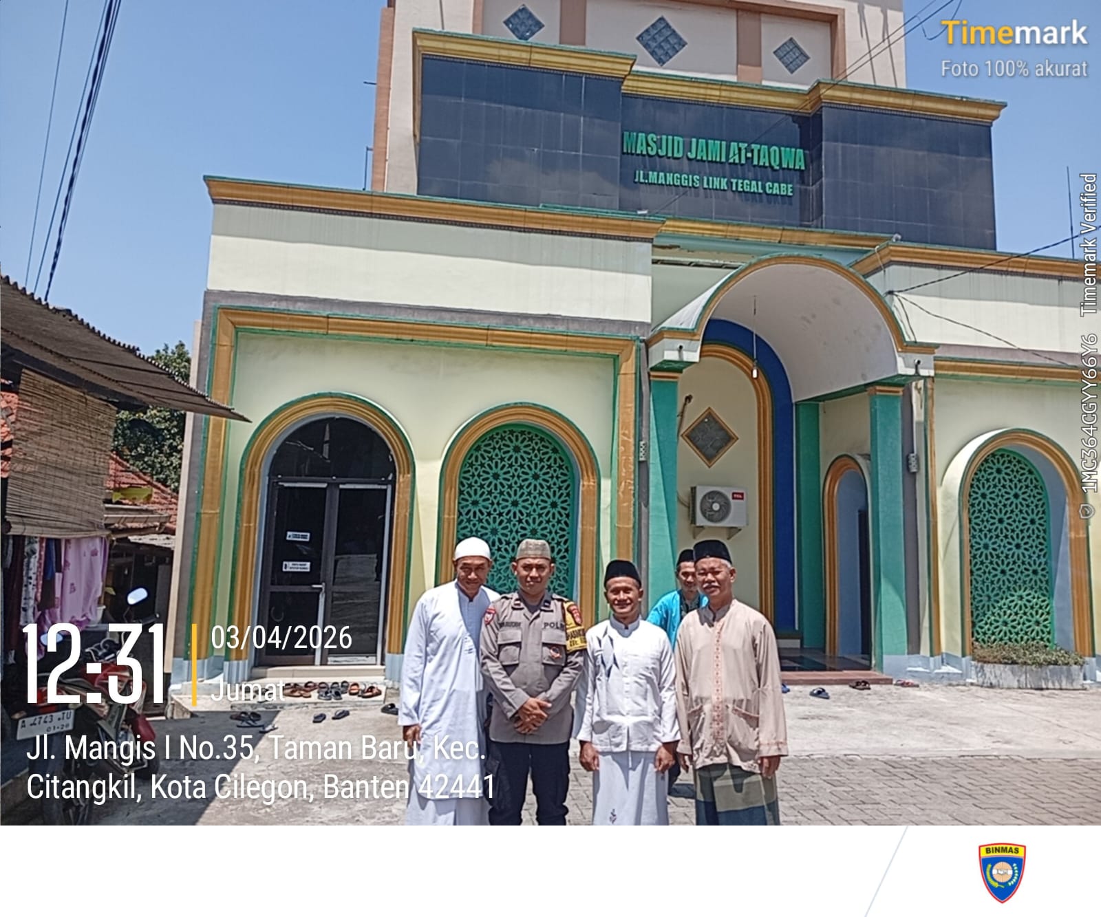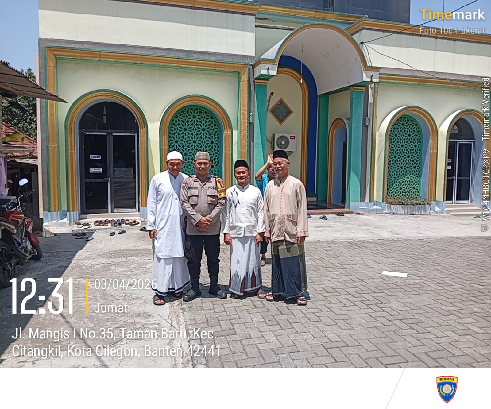 Cilegon - Bhabinkamtibmas Polsek Ciwandan Polres Cilegon Polda Banten Selesai melaksanakan Sholat secara berjama’ah dan Sampaikan Himbauan-himbauan Kamtibmas Kepada Masyarakat Jama'ah Yang ada Dimasjid, Jum'at (03/04/2026).Kapolres Cilegon Polda Banten AKBP Dr. Martua Raja Taripar Laut Silitonga Melalui Kapolsek Ciwandan Polres Cilegon Polda Banten KOMPOL Achri Dwi Yunito Mengatakan bahwa Usai melaksanakan...