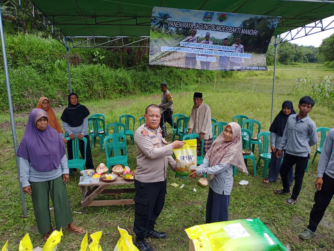 Kapolsek dan Bhabinkamtibmas Polsek Mancak Polres Cilegon Sambang dan Melaksanakan Kegiatan Panen Jagung serentak Kuartal III dalam rangka mendukung Swadaya Pangan tahun 2025.