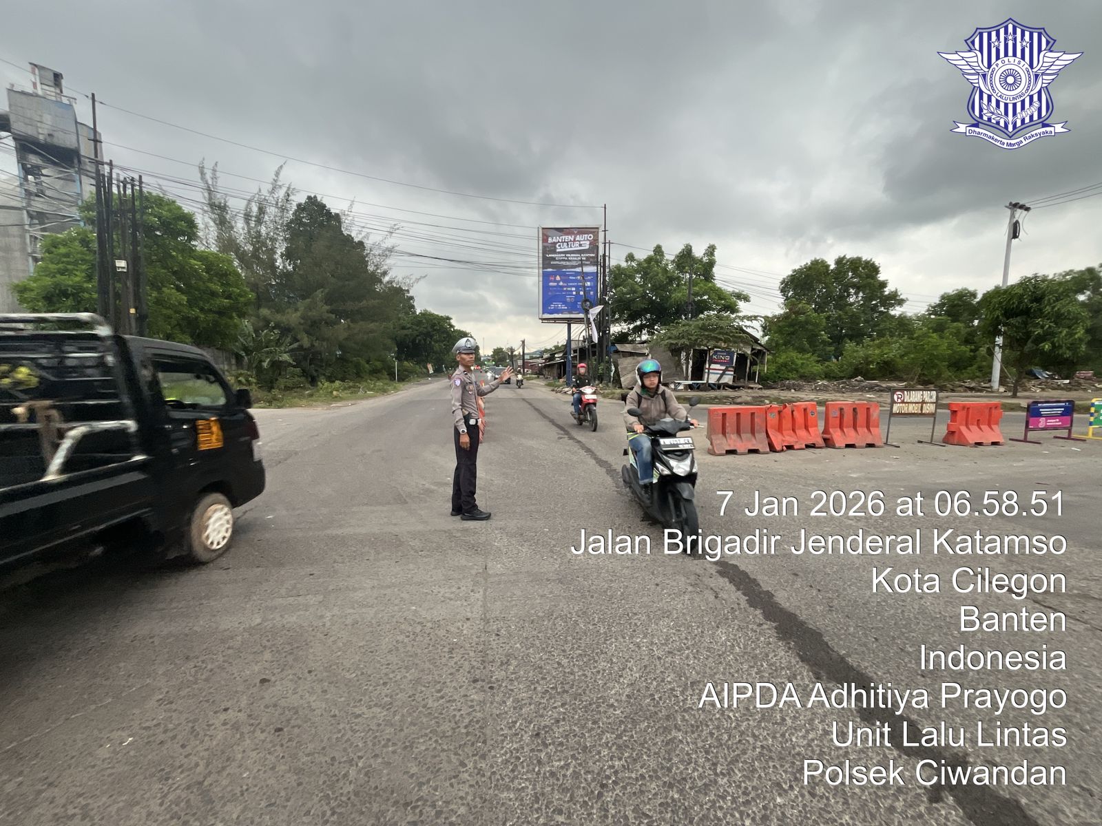 Panit Lantas Polsek Ciwandan Cek Dan Monitoring Saluran Air