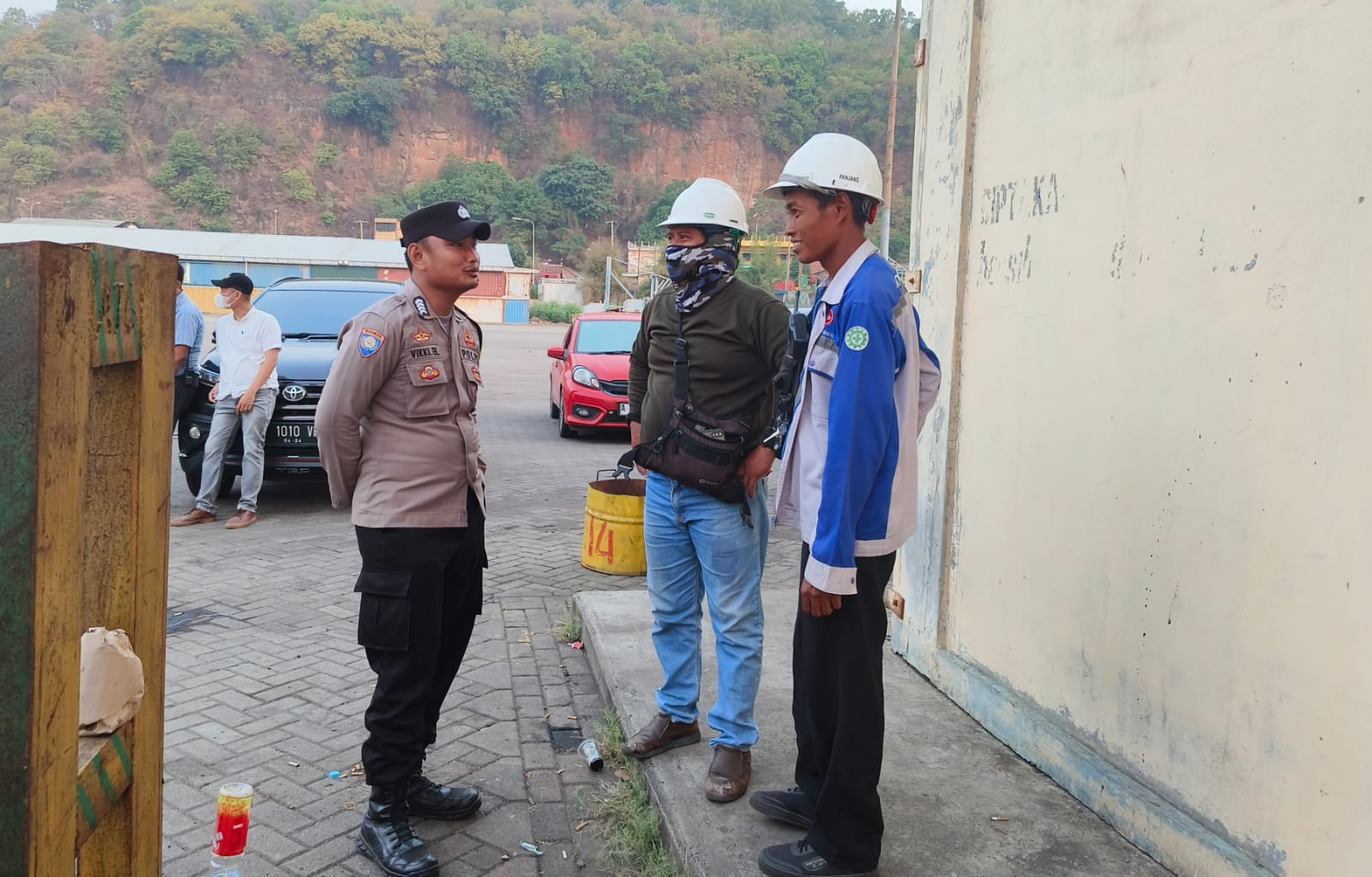 Personil Bhabinkamtibmas Polsek Kawasan Pelabuhan Banten Berbincang dengan Buruh Pelabuhan