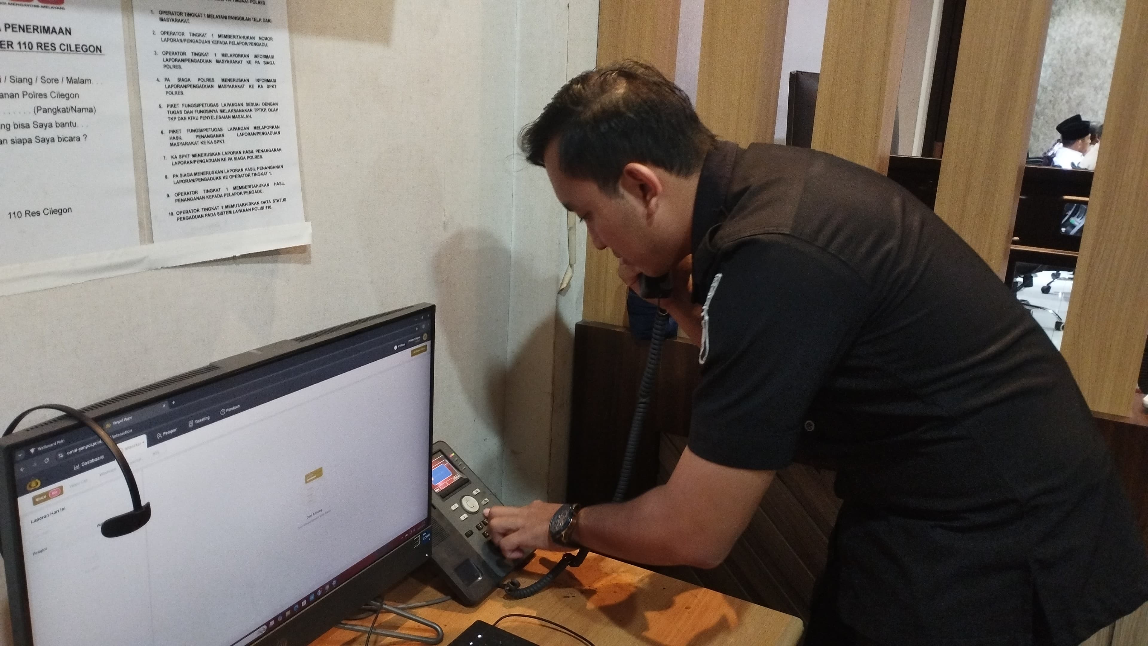 Personel SITIK Melakukan Pengecekan Jaringan Call Center 110 Polres Cilegon Cilegon, Polres Cilegon Polda Banten–Guna memberikan pelayanan terbaik untuk masyarakat, KAPOLRI mempunyai beberapa trobosan, salah satu nya adalah call center 110. Personel Sie Teknologi Informasi (SITIK) Polres Cilegon Polda Banten Bripda Wahyu Ari melakukan pengecekan jaringan yang ada di ruangan Operator 110 Polres Cilegon Polda Banten, mulai dari jaringan internet maupun jaringan telepon yang di gunakan untuk call center 110, semuanya dilakukan pemeriksaan/pengcekan. Setelah dilakukan pengecekan, jaringan internet maupun telepon yang ada di ruang operator call center 110 dalam keadaan bagus dan bisa digunakan dengan baik. Seperti yang disampaikan oleh Kapolres Cilegon AKBP. DR. MARTUA RAJA TARIPAR LAUT SILITONGA melalui Kasitik AIPTU Suwanto, S.H. “Personel Sie Teknologi Informasi (SITIK) Polres Cilegon Polda Banten melaksanakan tindak lanjut perintah pimpinan untuk selalu melakukan pengecekan jaringan internet maupun telepon yang ada di ruang call center 110 agar selalu berjalan dengan baik sesuai harapan pimpinan, sehingga Polres Cilegon dapat memberikan pelyanan terbaik kepada Masyarakat yang ada di Wilayah Hukum Polres Cilegon