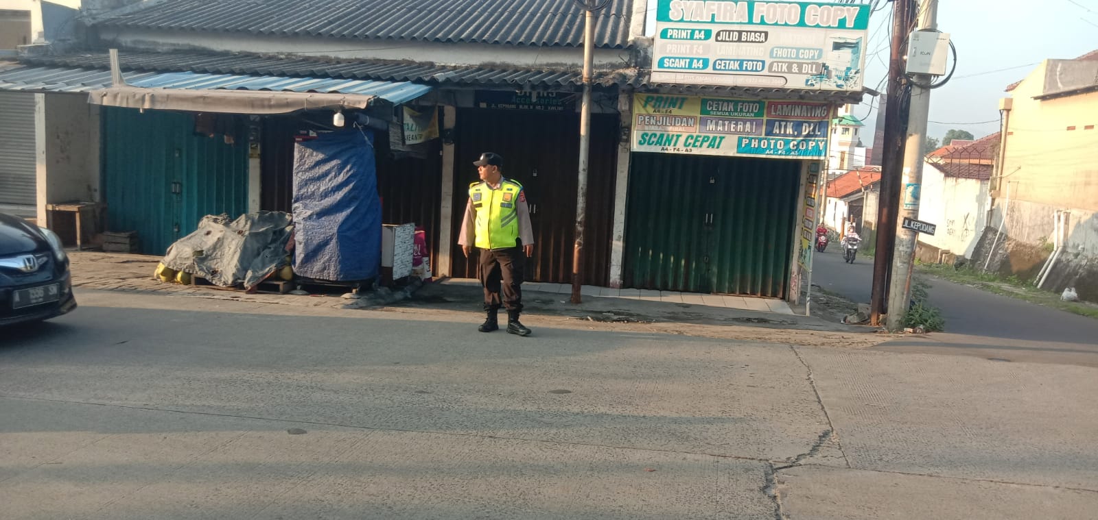 Personel Polsek Cilegon melaksanakan Strong point lalulintas bentuk pelayanan masyarakat.