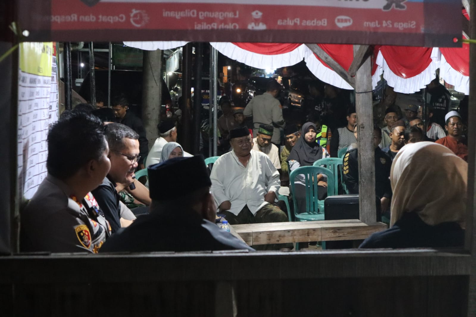 Kegiatan yang berlangsung sekitar pukul 22.16 WIB tersebut dihadiri langsung Kapolres Cilegon bersama jajaran pejabat utama Polres Cilegon, di antaranya Kabag Ops AKP Choirul Anam, S.H., M.H., M.Si., Kasat Binmas IPTU Muhyiddin, S.H., Kasie Propam AKP Herry Susanto, S.H., M.M., serta Kasat Lantas AKP Ridwan, S.T.K., S.I.K., M.H. Turut mendampingi Kapolsek Cibeber AKP Atep Mulyana, S.H., M.Si. bersama jajaran fungsi pembinaan dan Bhabinkamtibmas.