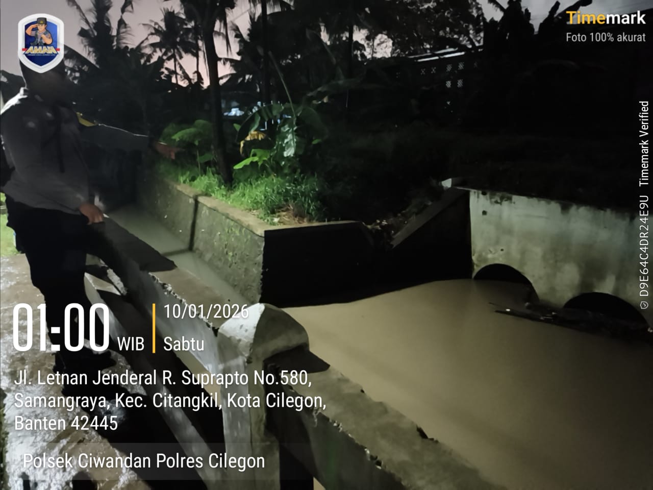 Cilegon - Personil Polsek Ciwandan Polres Cilegon Polda Banten, melaksanakan patroli antisipasi cuaca ekstrem di daerah hukumnya pada, Sabtu (10/01/2026).
