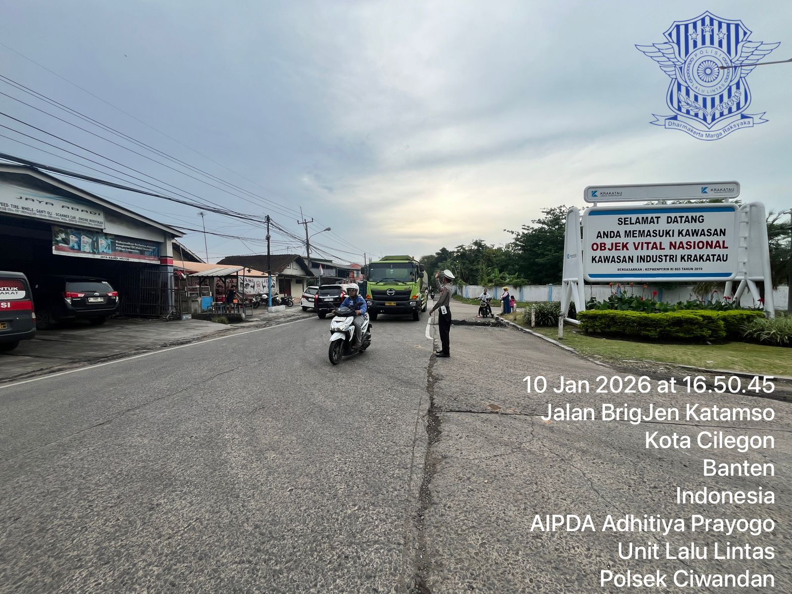 Personil Polsek Ciwandan melakukan pengaturan lalu lintas di depan Pos Lantas JLS Ciwandan dan peneguran terhadap pelanggaran kasat mata. Kegiatan ini dilaksanakan untuk memastikan keamanan dan kelancaran arus lalu lintas di wilayah hukum Polsek Ciwandan.
