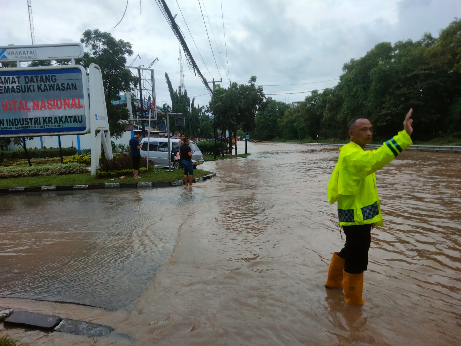 Dalam upaya penanganan dampak Banjir/ Genangan Air di Jalan Raya Ciwandan – Anyer didepan Koramil Ciwandan Dan kawasan Kiec II Kelurahan Tegal Ratu Kecamatan Ciwandan Kota Cilegon dengan ketinggian debit air 40 cm sehingga jalur 2 (dua) arah tidak dapat dilintasi oleh kendaraan baik R2 maupun R4 pribadi, tuturnya.