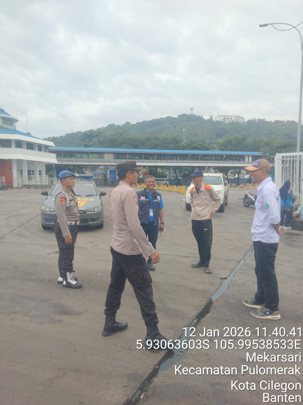 Cilegon - Personel Polsek Kskp Merak Polres Cilegon Polda Banten melaksanakan sambang dan patroli kawasan pelabuhan merak dalam rangka menjaga Harkamtibmas di Kawasan Pelabuhan Merak, Senin (12/01/2026).