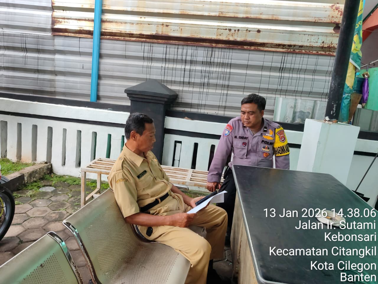 Cilegon - Personil Bhabinkamtibmas Polsek Ciwandan Polres Cilegon Polda Banten Menyampaikan Pesan Kamtibmas dan mengajak masyarakat terus aktif dalam kepedulian terhadap Pemeliharaan keamanan lingkungan di daerah Binaanya, Selasa (13/01/2026).