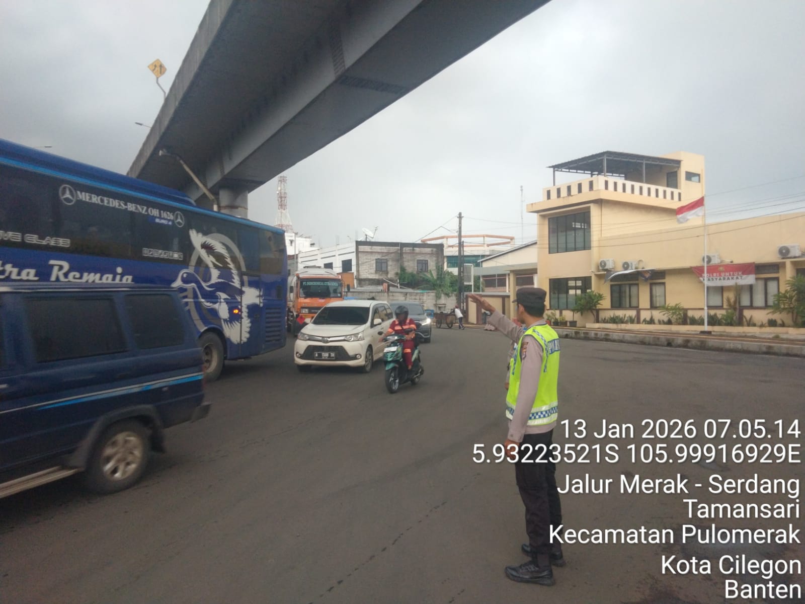 Cilegon - Dalam rangka peningkatan pelayanan prima kepada masyarakat, Kskp Merak Polres Cilegon Polda Banten melaksanakan pengaturan antrian R4 yang akan masuk ke Kapal Ferry di Pelabuhan Merak, Selasa (13/01/2026).