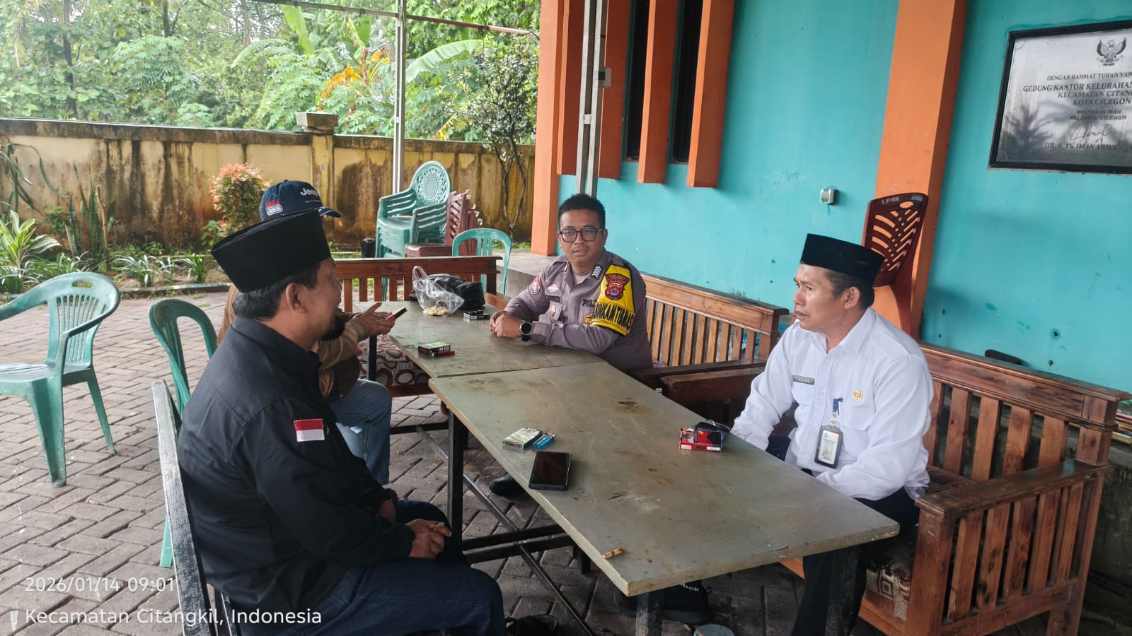 Cilegon - Bhabinkamtibmas Polsek Ciwandan Polres Cilegon Polda Banten Menyapa warga serta Ajak warga Binaannya untuk berperan aktif jaga keamanan lingkungan serta jalin komunikasi agar tercipta situasi aman di daerah hukum Polsek Ciwandan Polres Cilegon Polda Banten, Rabu (14/01/2026).