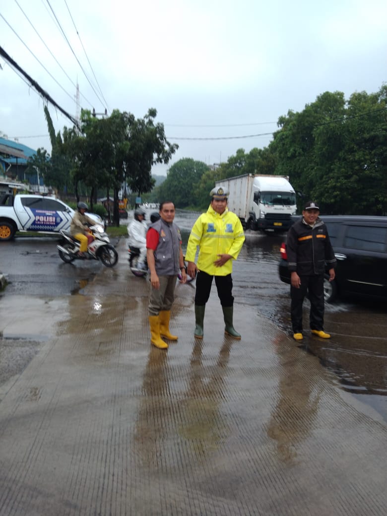 Lokasi yang tergenang air yaitu Jl. Raya Ciwandan Anyer (Depan Koramil Ciwandan), Kel. Tegal Ratu Ciwandan, dengan ketinggian 30-40 Cm.