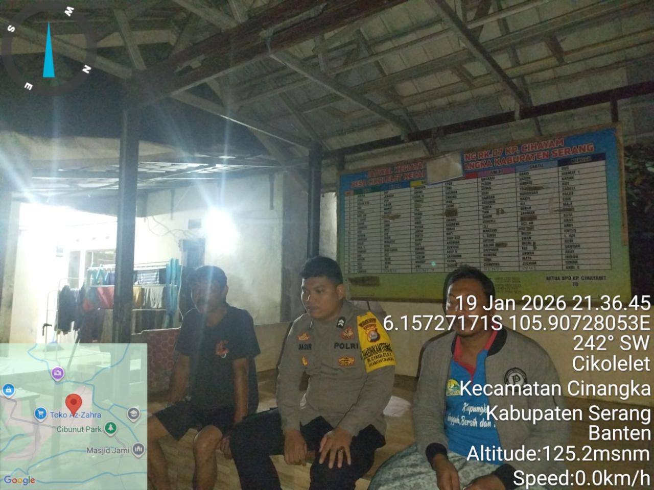 *Polres Cilegon* || Personil Bhabinkamtibmas Polsek Cinangka melaksanakan Program Komandan Wish Kapolda Banten RONDA SATKAMLING menyampaikan komunikasi dengan Petugas Siskamling agar berperan aktif dalam menciptakan Harkamtibmas yang aman dan Kondusif, Selasa (20/01/2026).