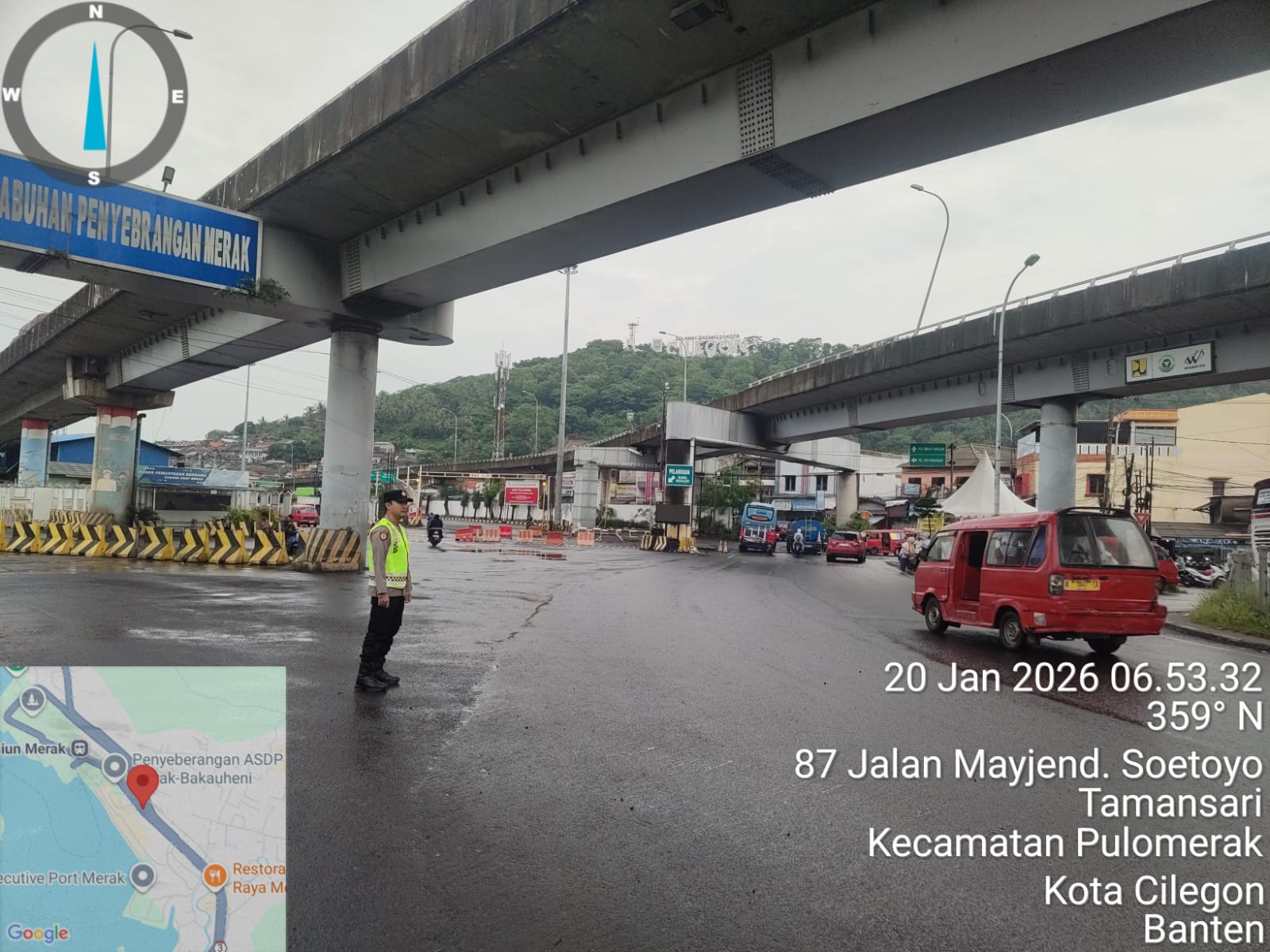 Cilegon - Dalam rangka peningkatan pelayanan prima kepada masyarakat, Kskp Merak Polres Cilegon Polda Banten melaksanakan pengaturan antrian R4 yang akan masuk ke Kapal Ferry di Pelabuhan Merak, Selasa (20/01/2026).