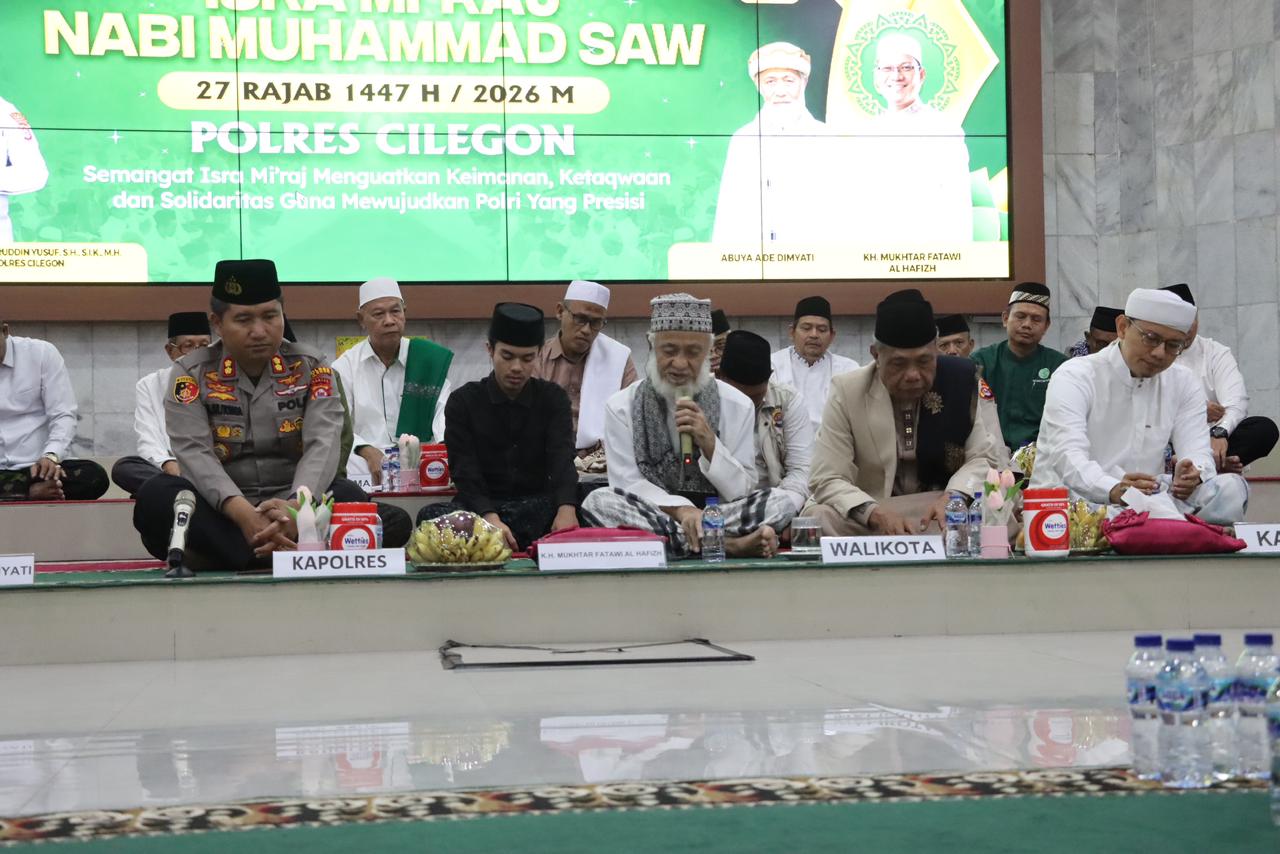 Cilegon – Polres Cilegon menggelar kegiatan istighosah dan ceramah agama dalam rangka Peringatan Hari Besar Islam (PHBI) Isra Mi’raj Nabi Muhammad SAW 1447 H/2026 M, yang berlangsung di Aula Wicaksana Leghawa Polres Cilegon, Rabu, 28/1/2026.