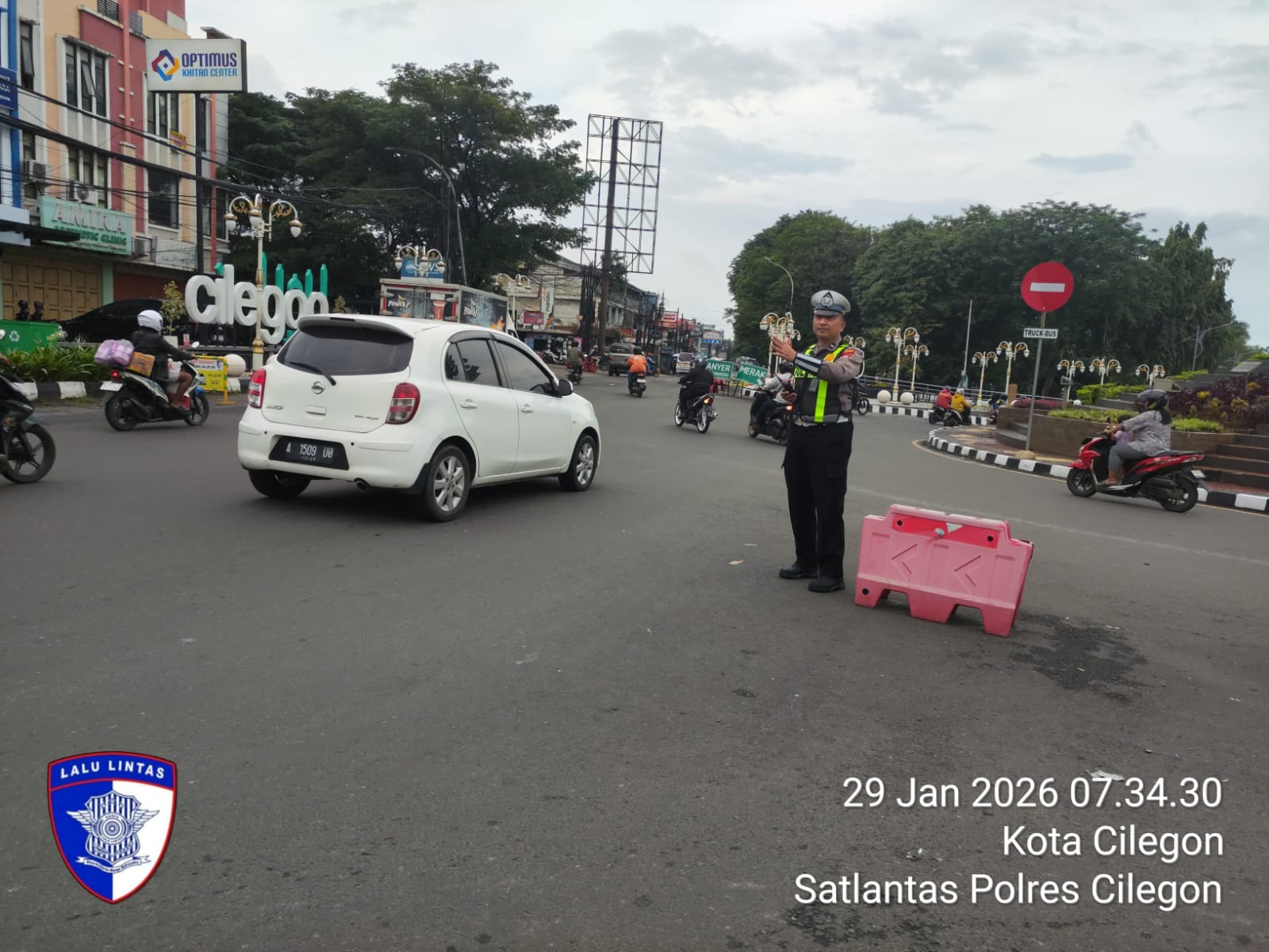 Cilegon – Polres Cilegon Polda Banten laksanakan Kegiatan Strong Point dalam rangka pengaturan arus lalu lintas dan kepadatan kendaraan pada jalur protokol/rawan macet di Darkum Polres Cilegon, Kamis (29/01/2026).