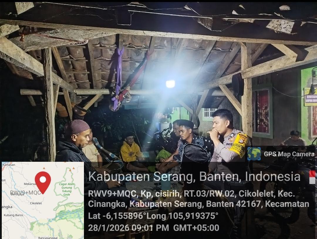*Polres Cilegon* || Personil Bhabinkamtibmas Polsek Cinangka melaksanakan Program Komandan Wish Kapolda Banten RONDA SATKAMLING menyampaikan komunikasi dengan Petugas Siskamling agar berperan aktif dalam menciptakan Harkamtibmas yang aman dan Kondusif, Kamis (29/01/2026).