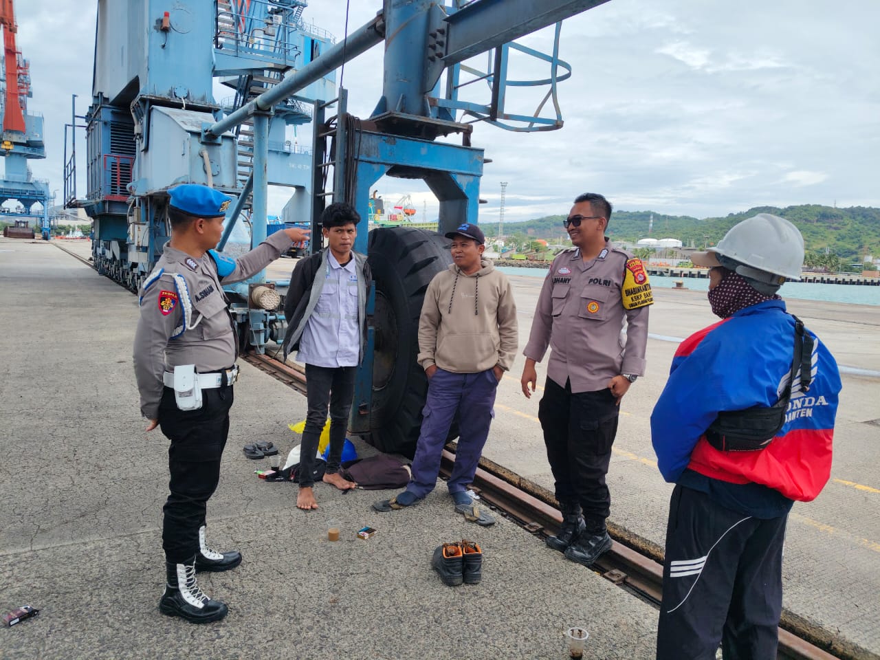 Jalin Silaturahmi, Personil Bhabinkamtibmas Polsek KP Banten Berbincang dengan Buruh Pelabuhan