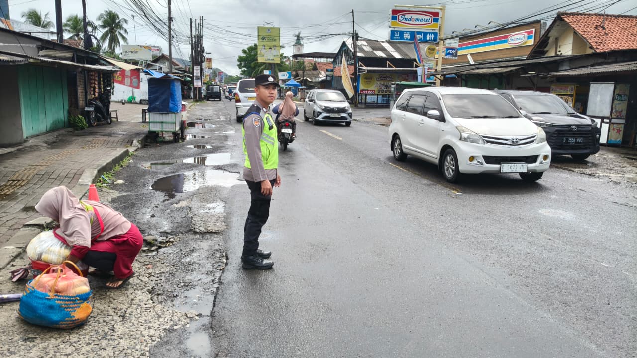 Kegiatan pengaturan lalu lintas ini dilakukan sebagai upaya preventif untuk mengantisipasi kepadatan kendaraan, terutama pada jam-jam sibuk. Personel tampak sigap mengatur arus kendaraan roda dua maupun roda empat agar tetap tertib dan lancar.